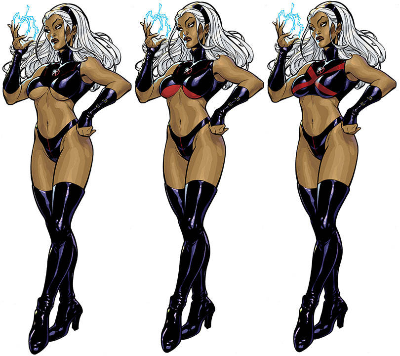 black_headgear breasts dark-skinned_female dark_skin gauntlets marvel midriff storm_(x-men) thighhighs underboob white_hair x-men