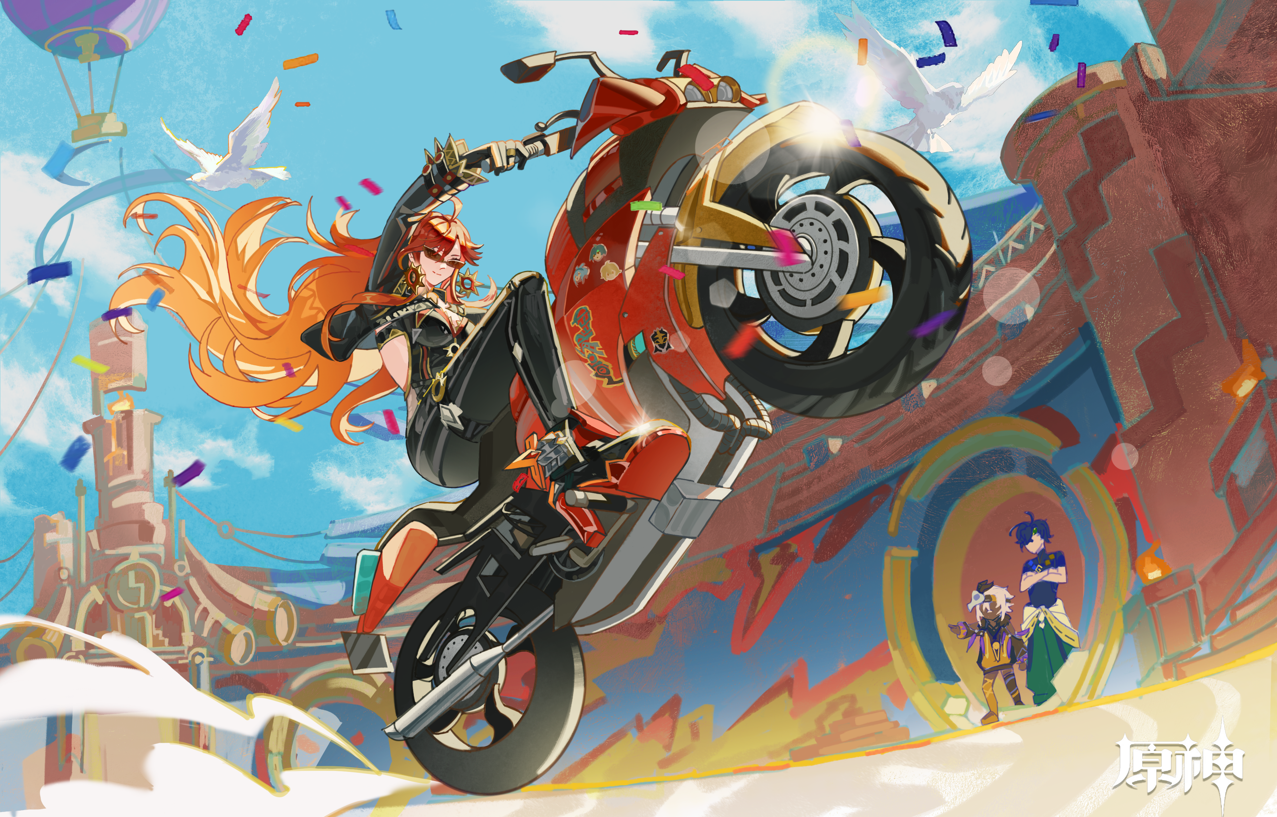 &{ID:12153382 CreatedAt:Sat Jun 21 14:15:14 -0500 2025 Score:9 Width:4154 Height:2659 MD5:002aa08dcf45fe215455a74160c4ecec Directory:00/2a Image:002aa08dcf45fe215455a74160c4ecec.png Rating:general Source:https://yichuanxian74207.lofter.com/post/4b57db25_2bcd7b70b Change:1768101083 Owner:danbooru CreatorID:6498 ParentID:0 Sample:1 PreviewHeight:224 PreviewWidth:350 Tags:1boy 2girls abstract_background absurdres ahoge aircraft biker_clothes bikesuit bird blue_sky bodysuit celebration chinese_commentary closed_mouth clothing_cutout cloud cloudy_sky confetti cropped_jacket dark-skinned_female dark_skin faceless faceless_female faceless_male floating from_below from_side genshin_impact glint gradient_hair hair_flowing_over high_heels highres hot_air_balloon huge_ahoge iansan_(genshin_impact) jacket kinich_(genshin_impact) leather leather_jacket leather_suit light_particles light_rays light_smile mavuika_(genshin_impact) motor_vehicle motorcycle multicolored_hair multiple_girls on_motorcycle outdoors red_hair riding side_cutout sitting sky standing sunbeam sunglasses sunlight wavy_hair yichuanxian74207 Title: HasNotes:false HasComments:false FileURL:https://img2.gelbooru.com/images/00/2a/002aa08dcf45fe215455a74160c4ecec.png PreviewURL:https://gelbooru.com/thumbnails/00/2a/thumbnail_002aa08dcf45fe215455a74160c4ecec.jpg SampleURL:https://img2.gelbooru.com/samples/00/2a/sample_002aa08dcf45fe215455a74160c4ecec.jpg SampleHeight:544 SampleWidth:850 Status:active PostLocked:0 HasChildren:false IsVideo:false DisplayDate:21.06.2025 14:15}