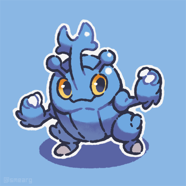 blue_background commentary english_commentary gen_2_pokemon heracross looking_at_viewer nintendo no_humans outline pokemon pokemon_(creature) simple_background smore_(smearg) solo white_outline