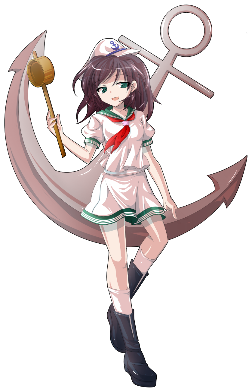 1girl anchor anchor_print anchor_symbol arm_at_side black_boots boots breasts brown_hair choppy_bangs collarbone commentary_request dairi full_body green_eyes green_sailor_collar half-closed_eyes hand_up hat highres hishaku holding kneehighs large_variant_set long_hair medium_breasts miniskirt murasa_minamitsu neckerchief open_mouth pink_hat pink_serafuku pink_shirt pink_skirt pink_socks puffy_short_sleeves puffy_sleeves raised_eyebrows red_neckerchief sailor_collar sailor_hat school_uniform serafuku shirt short_sleeves simple_background skirt smile socks solo standing standing_on_one_leg tachi-e touhou transparent_background variant_set
