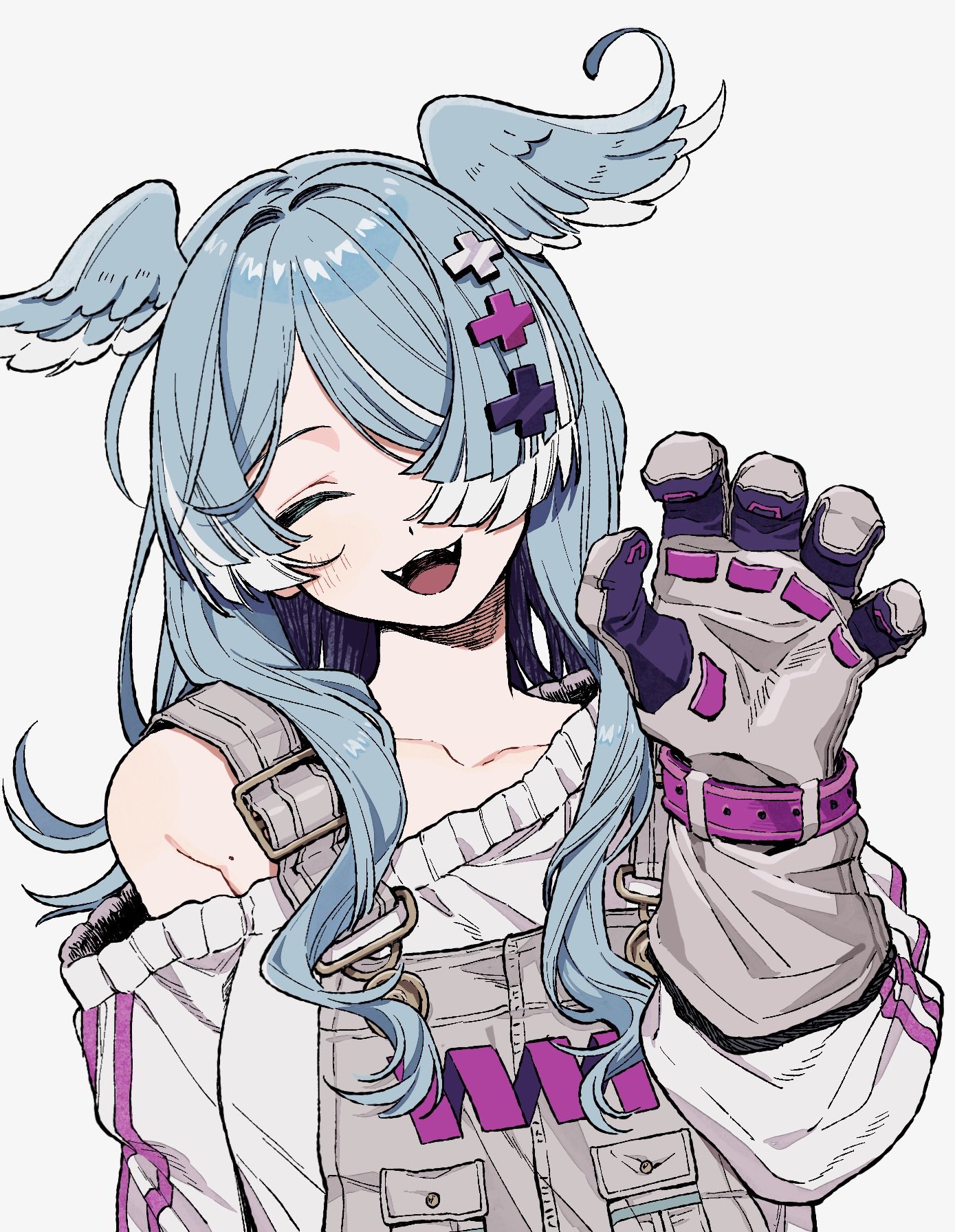 1girl blue_hair dragon_girl elira_pendora fangs gloves head_tilt head_wings highres nijisanji nijisanji_en rokkatera smile solo virtual_youtuber wings