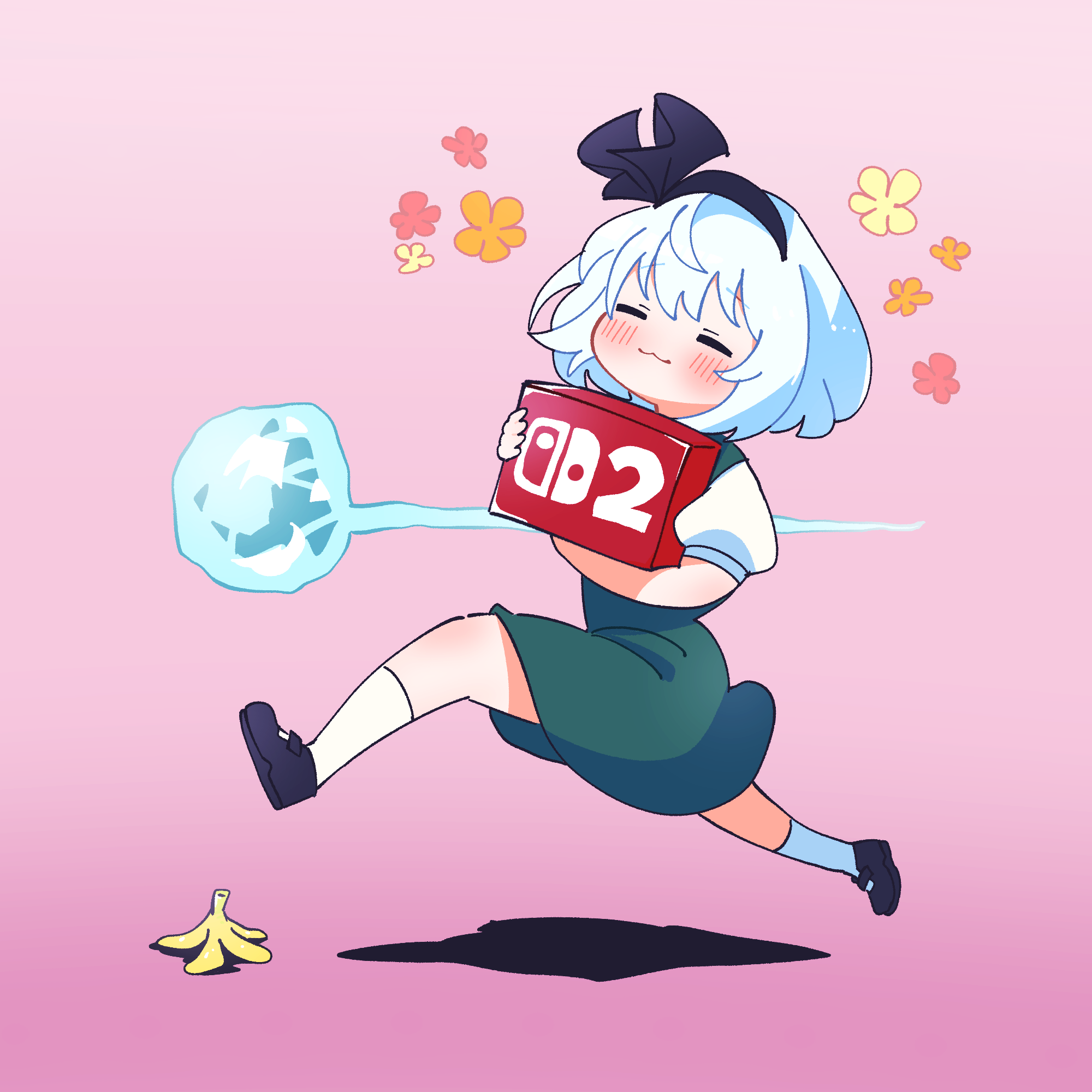 banana_peel box gramgarage9 highres holding holding_box konpaku_youmu konpaku_youmu_(ghost) nintendo_switch_2 running touhou