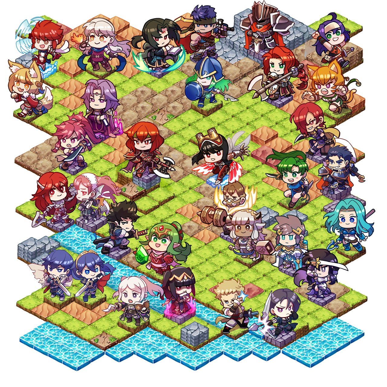 6+boys 6+girls animal_ears armor arrow_(projectile) ash_(fire_emblem) axe ayra_(fire_emblem) battle_axe black_hair black_knight_(fire_emblem) blonde_hair blue_eyes blue_hair book bow_(weapon) brown_hair cape cat_ears cat_girl cherche_(fire_emblem) chibi chibi_only chrom_(fire_emblem) circle cordelia_(fire_emblem) eikthyrnir_(fire_emblem) facial_mark female_robin_(fire_emblem) fiora_(fire_emblem) fire_emblem fire_emblem:_genealogy_of_the_holy_war fire_emblem:_mystery_of_the_emblem fire_emblem:_path_of_radiance fire_emblem:_radiant_dawn fire_emblem:_the_blazing_blade fire_emblem:_the_sacred_stones fire_emblem:_three_houses fire_emblem_awakening fire_emblem_fates fire_emblem_heroes forehead_mark fox_ears fox_girl full_armor green_eyes green_hair hakuramen hand_on_hilt headband hector_(fire_emblem) highres hinoka_(fire_emblem) holding holding_book holding_bow_(weapon) holding_polearm holding_sword holding_weapon horns hraesvelgr_(fire_emblem) hrid_(fire_emblem) ike_(fire_emblem) leila_(fire_emblem) lethe_(fire_emblem) lon'qu_(fire_emblem) long_hair lucina_(fire_emblem) lyn_(fire_emblem) lyon_(fire_emblem) marisa_(fire_emblem) mia_(fire_emblem) micaiah_(fire_emblem) minerva_(fire_emblem) multiple_boys multiple_girls nephenee_(fire_emblem) nintendo orange_hair owain_(fire_emblem) pink_hair planted planted_sword planted_weapon polearm ponytail purple_eyes purple_hair red_eyes red_hair selkie_(fire_emblem) shamir_nevrand shield short_hair soren_(fire_emblem) sword tail tharja_(fire_emblem) tiara tiki_(adult)_(fire_emblem) tiki_(fire_emblem) twintails weapon white_hair