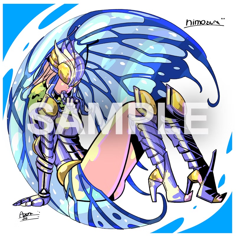 1girl armor armored_boots armored_gloves artist_name artist_request ass blue_hair boots breasts bug butterfly butterfly_wings commission digimon digimon_(creature) digimon_story:_cyber_sleuth digimon_story:_cyber_sleuth_hacker's_memory female_focus fur_collar gloves gluteal_fold headgear helmet high_heels insect insect_wings large_breasts leotard long_hair looking_at_viewer profile sample_watermark shiny_clothes shoulder_armor from_side sitting skeb skeb_commission skirt solo solo_focus thick_thighs thighhighs thighs tinted_eyewear watermark white_background wings yellow-tinted_eyewear