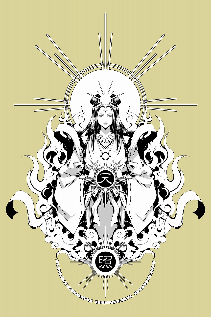 1girl amaterasu_(mythology) circlet commentary_request expressionless halo highres japanese_mythology long_hair looking_at_viewer robe solo straight-on yamada_satoshi