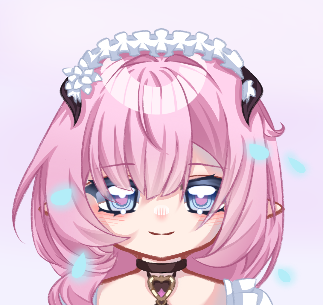 1girl ansha_da_wei black_choker blue_eyes chinese_commentary choker commentary_request elf elysia_(honkai_impact) elysia_(miss_pink)_(honkai_impact) elysia_(miss_pink_elf)_(honkai_impact) fake_horns honkai_(series) honkai_impact_3rd horns maid maid_headdress official_alternate_costume pink_hair pink_pupils pointy_ears portrait simple_background solo white_background