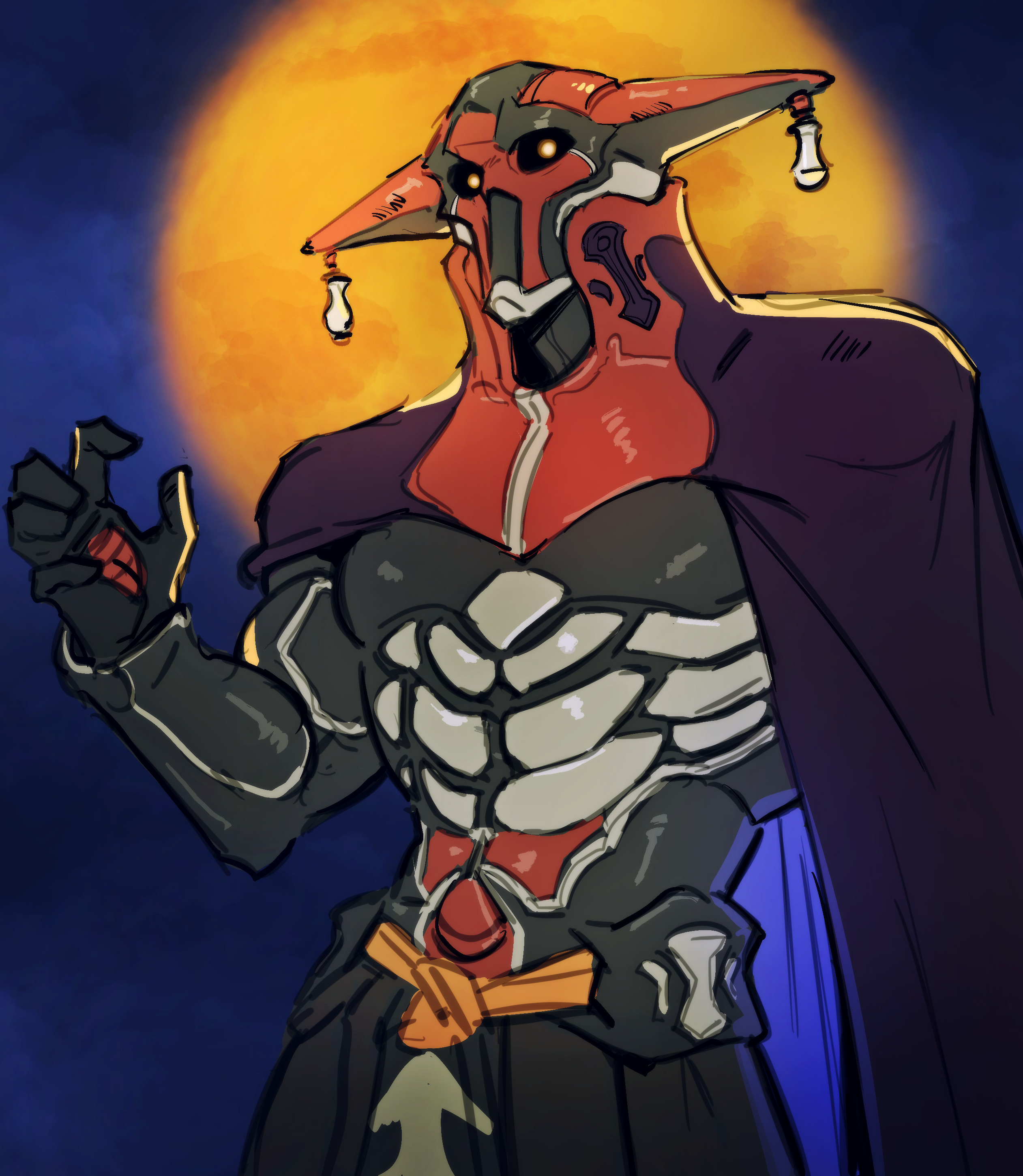 abs absurdres armor cape commentary english_commentary full_moon glowing glowing_eyes grahf hand_up highres mecha moon night outdoors red_eyes robot sketch standing vhkaneweer xenogears