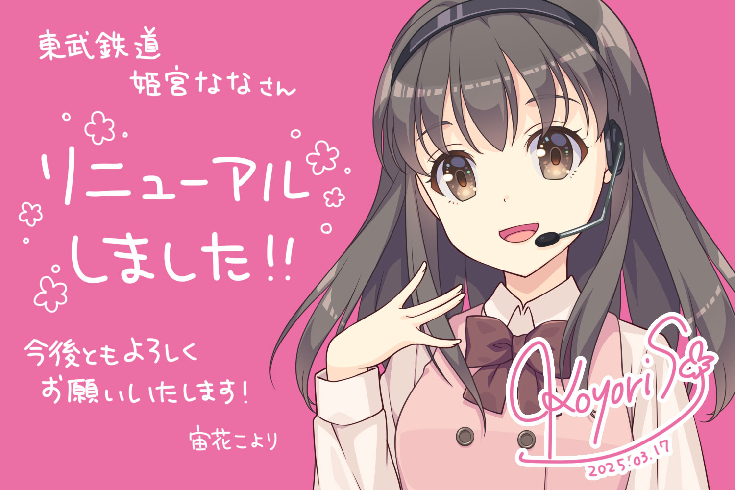 1girl black_hair brown_hair hair_between_eyes headset himemiya_nana long_hair long_sleeves looking_at_viewer microphone open_mouth shirt smile solo sorahana_koyori tobu_railway vest