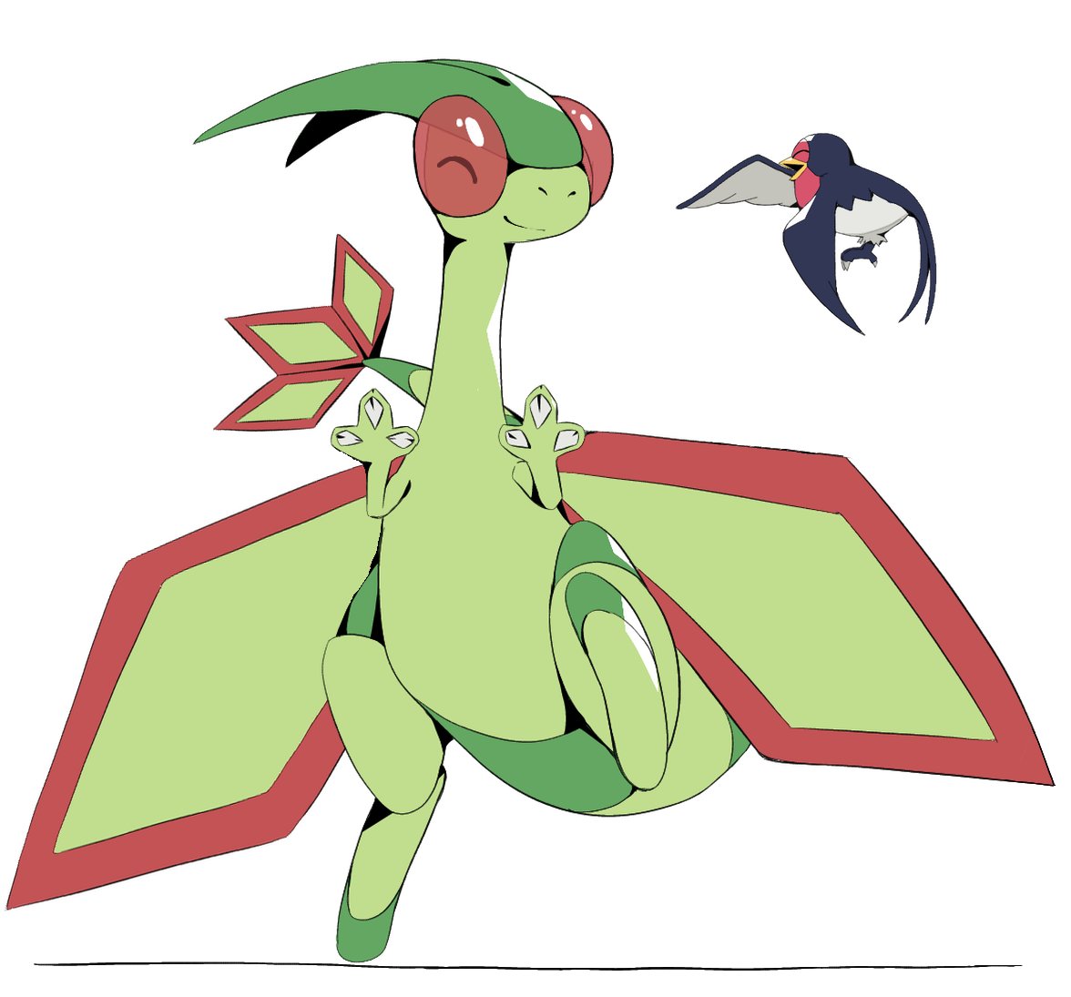 ^_^ claws closed_eyes flygon gen_3_pokemon hands_up happy nintendo no_humans open_mouth pokemon pokemon_(creature) pokemon_focus psaber97 smile taillow white_background