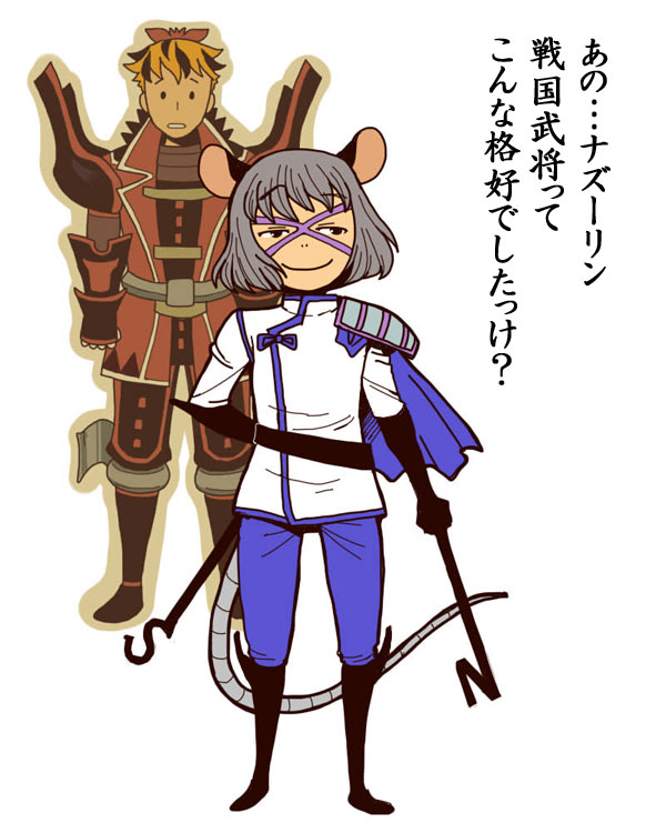 2girls animal_ears armor black_boots black_eyes black_gloves black_hair black_pants black_shirt blonde_hair blue_pants boots closed_mouth commentary_request cosplay crossdressing crossdressing_(ftm) dowsing_rod full_body gloves jacket mouse_ears mouse_girl mouse_tail multicolored_hair multiple_girls nazrin onikobe_rin orange_hair pants pauldrons red_jacket reverse_trap sengoku_basara shirt short_hair shoulder_armor simple_background single_pauldron smile standing streaked_hair tail takenaka_hanbee_(sengoku_basara) takenaka_hanbee_(sengoku_basara)_(cosplay) toramaru_shou touhou toyotomi_hideyoshi_(sengoku_basara) toyotomi_hideyoshi_(sengoku_basara)_(cosplay) translation_request white_background white_shirt