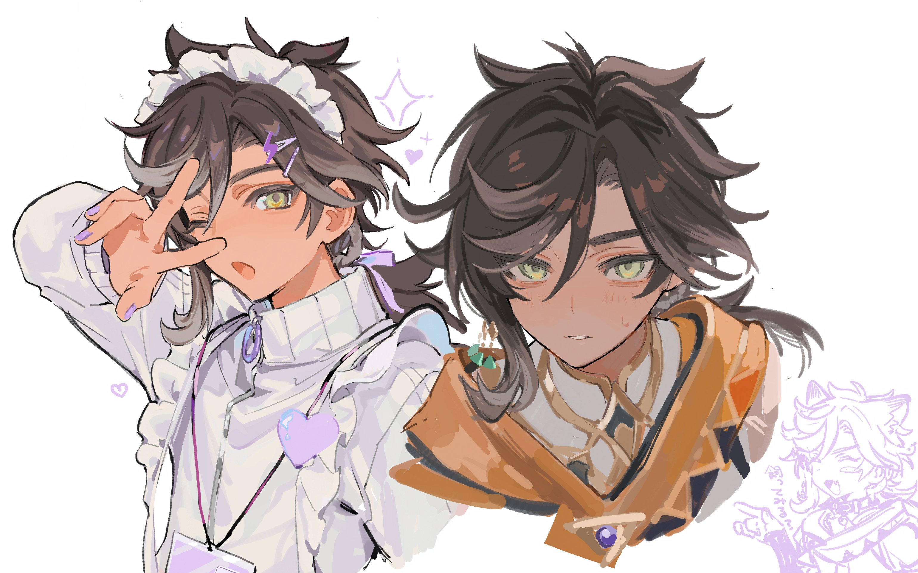 &{ID:12293058 CreatedAt:Thu Jul 17 01:30:03 -0500 2025 Score:5 Width:3080 Height:1924 MD5:c7bf28d6c48079b6124a958f5c8df180 Directory:c7/bf Image:c7bf28d6c48079b6124a958f5c8df180.jpg Rating:general Source:https://twitter.com/kawaisan__/status/1944331384698646763 Change:1754672856 Owner:danbooru CreatorID:6498 ParentID:0 Sample:1 PreviewHeight:218 PreviewWidth:350 Tags:1boy alternate_costume animal_ears apron black_hair blush blush_stickers commentary_request crossdressing crossdressing_(mtf) genshin_impact green_eyes grey_hair hair_between_eyes hair_ornament hairclip heart highres jacket jersey_maid kaawaisann maid maid_headdress male_focus male_maid multicolored_hair multiple_views nail_polish pointing purple_nails sethos_(genshin_impact) simple_background single_blush_sticker sparkle sweat unconventional_maid upper_body v v_over_eye white_apron white_background white_jacket Title: HasNotes:false HasComments:false FileURL:https://img2.gelbooru.com/images/c7/bf/c7bf28d6c48079b6124a958f5c8df180.jpg PreviewURL:https://gelbooru.com/thumbnails/c7/bf/thumbnail_c7bf28d6c48079b6124a958f5c8df180.jpg SampleURL:https://img2.gelbooru.com/samples/c7/bf/sample_c7bf28d6c48079b6124a958f5c8df180.jpg SampleHeight:531 SampleWidth:850 Status:active PostLocked:0 HasChildren:false IsVideo:false DisplayDate:17.07.2025 01:30}