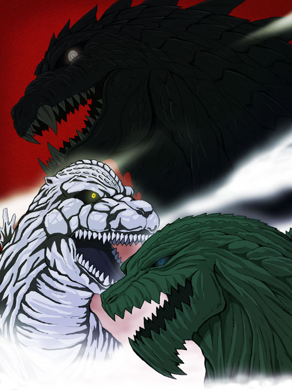 black_sclera blue_eyes blue_tongue bones_(company) colored_sclera colored_tongue fangs flying fog giant giant_monster glowing glowing_eyes godzilla godzilla:_planet_of_the_monsters godzilla_(series) godzilla_earth godzilla_singular_point godzilla_ultima kaiju monster multiple_persona no_humans olm_(studio) open_mouth orange_(company) polygon_pictures red_background sharp_teeth shinkalion_(series) shinkansen_henkei_robo_shinkalion shinkansen_henkei_robo_shinkalion_the_movie:_the_marvelous_fast_alfa-x_that_comes_from_the_future simple_background slit_pupils snow snow_godzilla spikes storm takara_tomy teeth toho tongue vapor white_eyes yellow_eyes yuukiharuka