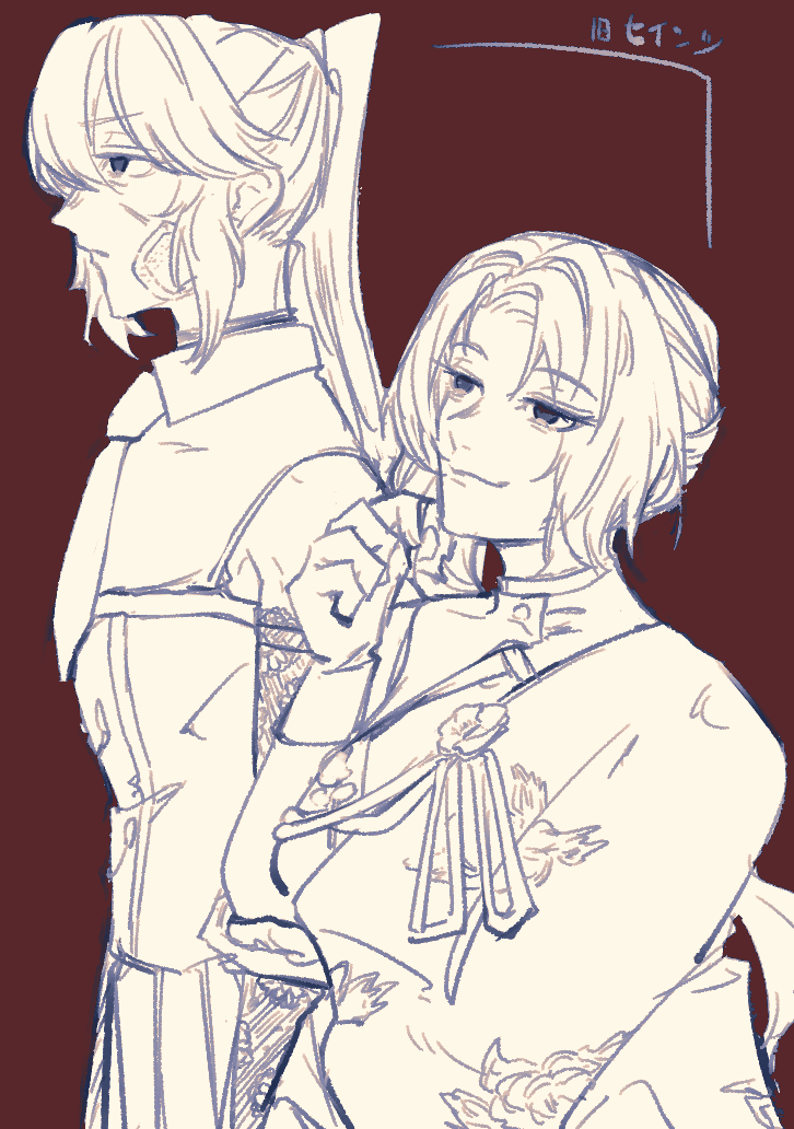 2girls arm_at_side assault_lily closed_mouth collared_shirt commentary cowboy_shot detached_sleeves doanobu8817 floral_print gauze gauze_on_cheek gauze_on_face greyscale_with_colored_background hair_between_eyes hand_on_own_elbow hands_up long_hair long_sleeves looking_ahead maruyama_amane multiple_girls nagasawa_yuki_(assault_lily) necktie odaiba_girls_high_school_uniform parted_bangs pleated_skirt ponytail print_cape red_background school_uniform shirt side_cape side_ponytail simple_background skirt sleeveless sleeveless_shirt smile v-shaped_eyebrows