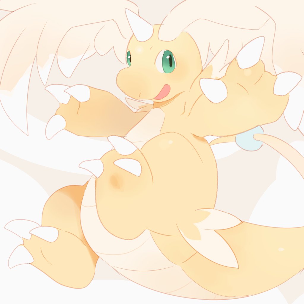 claws dragon dragonite feathered_wings full_body gen_1_pokemon green_eyes gtnsnin99 head_wings horns mega_dragonite mega_pokemon nintendo no_humans open_mouth pokemon pokemon_(creature) pokemon_focus single_horn smile solo tail wings