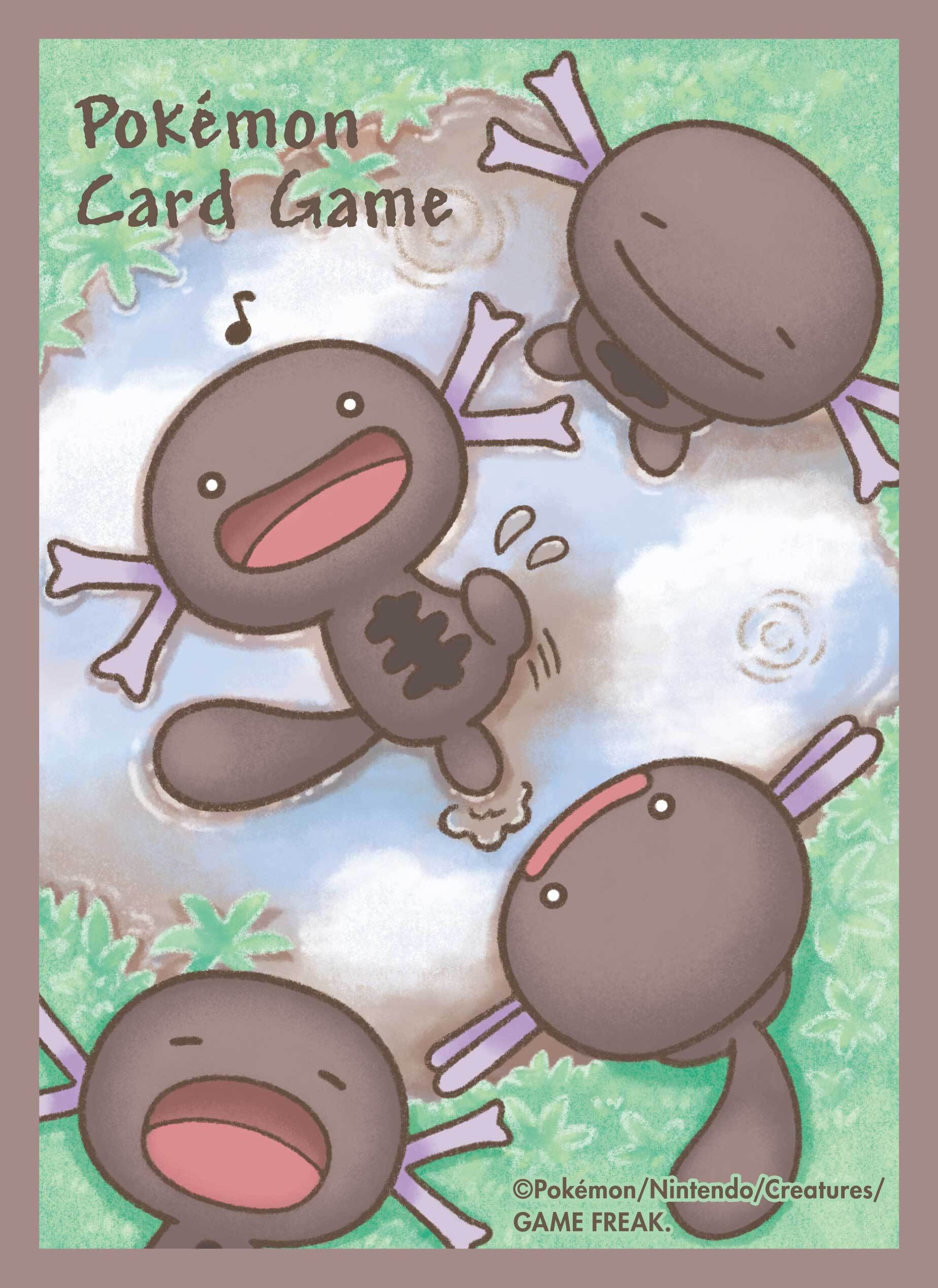 absurdres artist_request border brown_border closed_mouth cloud commentary_request company_name copyright_name copyright_notice english_text grass highres musical_note nintendo no_humans open_mouth paldean_wooper pokemon pokemon_(creature) pokemon_focus pokemon_tcg puddle reflection reflective_liquid ripples second-party_source smile