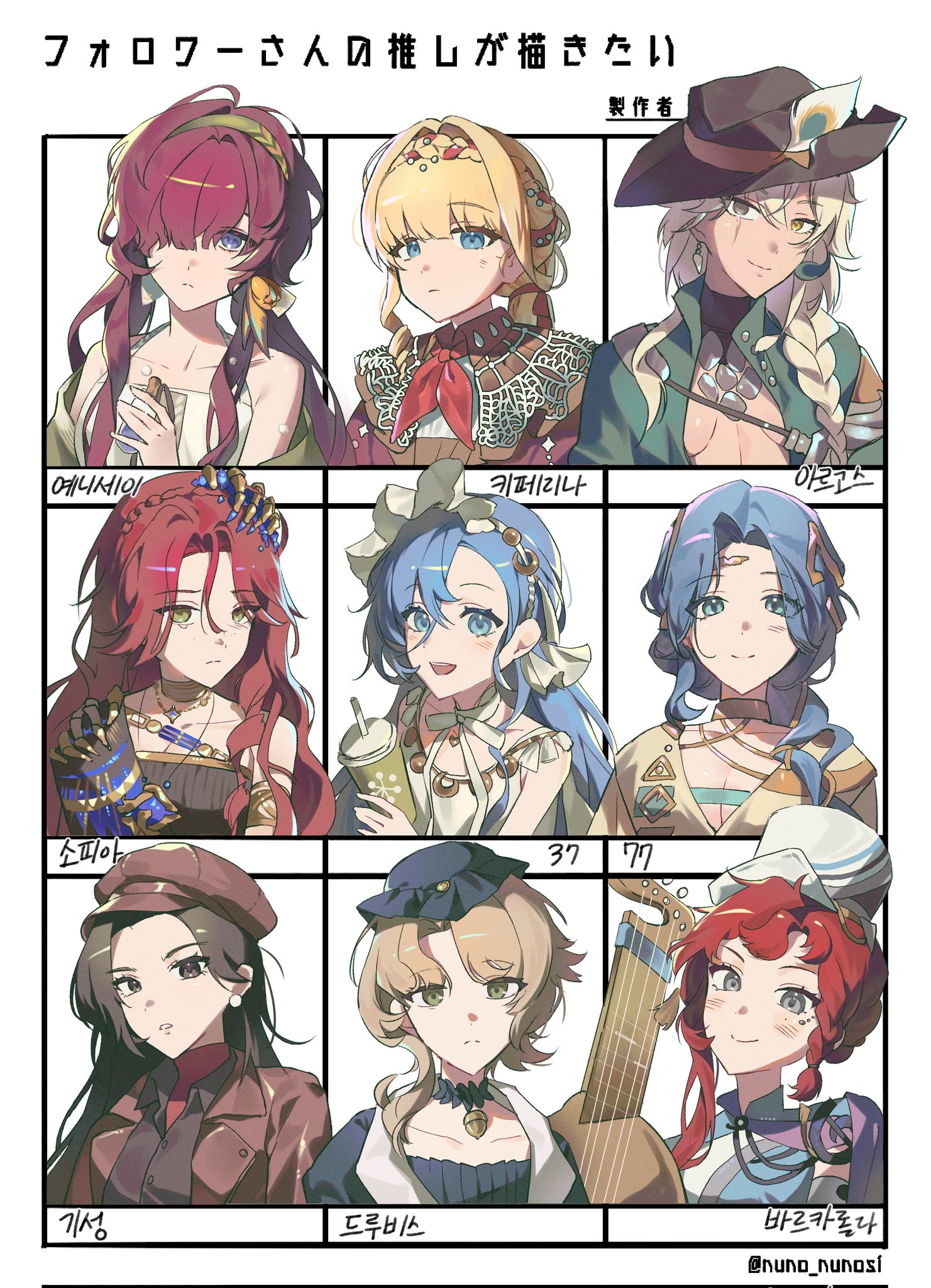 37_(naisnow)_(reverse:1999) 37_(reverse:1999) 6+girls 77_(reverse:1999) :/ :d acorn_pendant ancient_greek_clothes argus_(reverse:1999) armlet barcarola_(reverse:1999) bare_shoulders black_dress black_hair black_hat black_shirt blonde_hair blue_dress blue_eyes blue_hair blue_hat bottle braid braided_bangs breasts breasts_apart brown_dress brown_hat brown_jacket cape capelet character_name cleavage cloak closed_mouth cowboy_hat crackling_box_(reverse:1999) cup disposable_cup dress druvis_iii fascinator followers_favorite_challenge gold_choker greco-roman_clothes green_cape green_capelet green_eyes green_hairband grey_eyes guni_(9guniguni) hair_between_eyes hair_ornament hair_over_one_eye hairband hand_up hat heterochromia highres holding holding_bottle holding_cup instrument jacket jewelry kiperina long_braid long_hair looking_at_viewer low_ponytail low_twintails medium_breasts mother_and_child mother_and_daughter multiple_drawing_challenge multiple_girls neckerchief newsboy_cap no_bra official_alternate_costume one_eye_covered open_mouth parent_and_child parted_lips ponytail qi_xing_(reverse:1999) red_cloak red_hair red_neckerchief reverse:1999 scar scar_across_eye scar_on_face shako_cap shirt short_hair single_bare_shoulder sleeveless sleeveless_dress sleeveless_shirt smile sophia_(manus_vindictae)_(reverse:1999) sophia_(reverse:1999) spaghetti_strap tearing_up twintails upper_body white_dress white_hat yenisei_(around_the_riverbend)_(reverse:1999) yenisei_(reverse:1999)