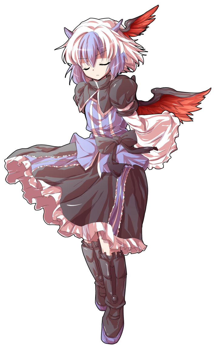 1girl alphes_(style) black_boots black_skirt blue_hair boots commentary_request dairi feathered_wings frilled_skirt frilled_sleeves frills full_body head_wings horns large_variant_set long_sleeves multicolored_hair parody red_wings short_hair single_head_wing skirt solo style_parody tachi-e tokiko_(touhou) touhou transparent_background two-tone_hair variant_set white_hair wide_sleeves wings