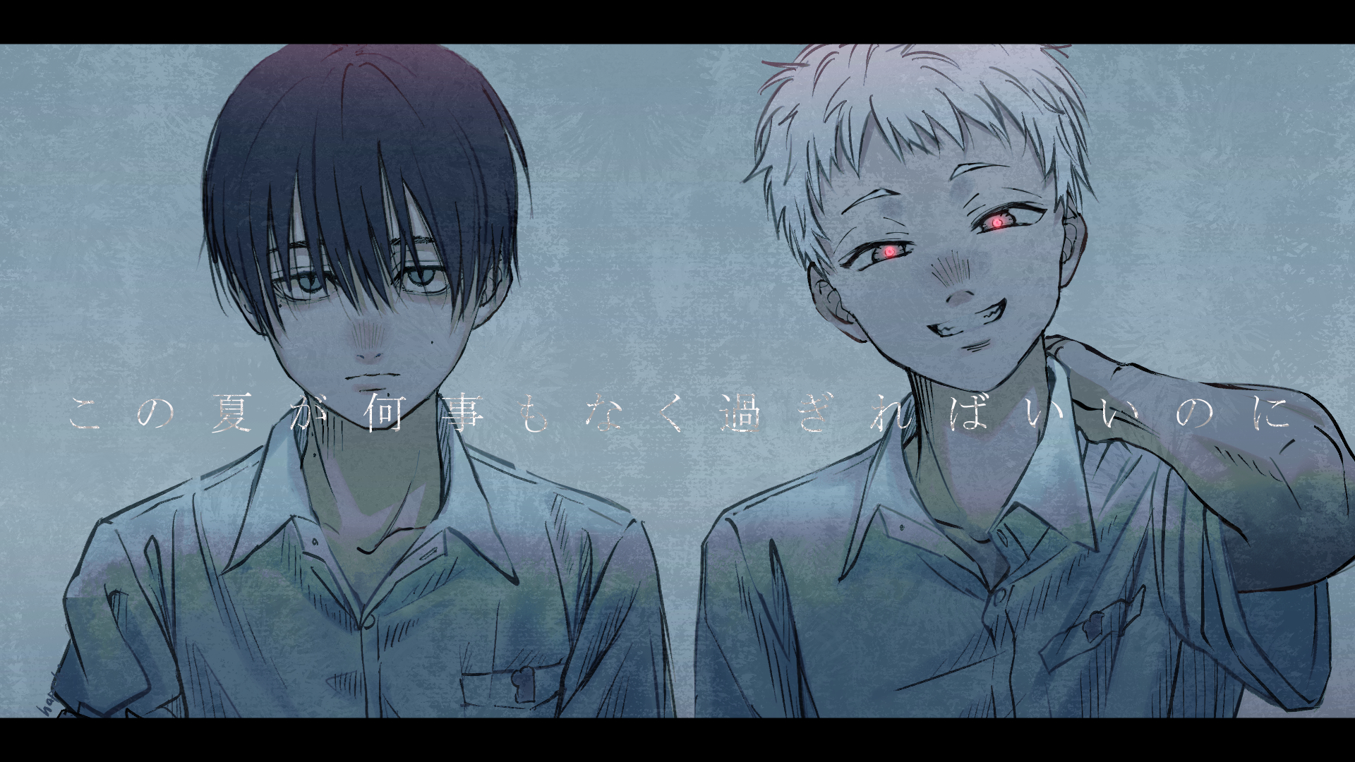 &{ID:12369292 CreatedAt:Wed Jul 30 04:15:45 -0500 2025 Score:0 Width:1920 Height:1080 MD5:92d1fb78e2d21e642699eedf62c57e05 Directory:92/d1 Image:92d1fb78e2d21e642699eedf62c57e05.jpg Rating:general Source:https://www.pixiv.net/artworks/133279756 Change:1753866945 Owner:danbooru CreatorID:6498 ParentID:0 Sample:1 PreviewHeight:196 PreviewWidth:350 Tags:2boys black_hair blush closed_mouth collared_shirt commentary expressionless grey_background grey_eyes grin hair_between_eyes hand_on_own_neck hapchi highres hikaru_ga_shinda_natsu indou_hikaru letterboxed looking_at_viewer male_focus mole mole_on_cheek mole_on_neck mole_under_eye mole_under_mouth multiple_boys multiple_moles nose_blush portrait red_pupils school_uniform shirt short_hair short_sleeves smile straight-on translated tsujinaka_yoshiki white_hair white_shirt Title: HasNotes:true HasComments:false FileURL:https://img2.gelbooru.com/images/92/d1/92d1fb78e2d21e642699eedf62c57e05.jpg PreviewURL:https://gelbooru.com/thumbnails/92/d1/thumbnail_92d1fb78e2d21e642699eedf62c57e05.jpg SampleURL:https://img2.gelbooru.com/samples/92/d1/sample_92d1fb78e2d21e642699eedf62c57e05.jpg SampleHeight:478 SampleWidth:850 Status:active PostLocked:0 HasChildren:false IsVideo:false DisplayDate:30.07.2025 04:15}