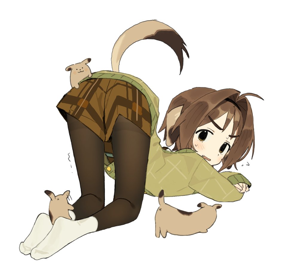 ahoge blush brown_eyes brown_hair cat indie_virtual_youtuber mota_(motaberrie) motaberrie_(vtuber) no_shoes pantyhose short_hair shorts tail virtual_youtuber