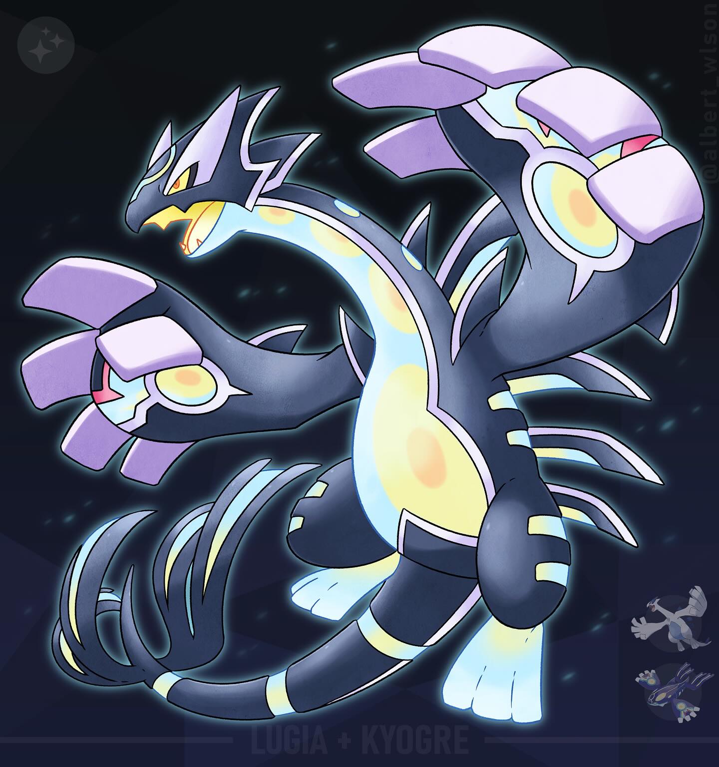 albrt-wlson alternate_color animal_focus character_name colored_sclera commentary english_commentary fangs full_body fusion gen_2_pokemon gen_3_pokemon highres kyogre legendary_pokemon lugia nintendo no_humans official_art_inset open_mouth orange_eyes pokemon pokemon_(creature) pokemon_focus primal_kyogre procreate_(medium) reference_inset shiny_pokemon solo v-shaped_eyes yellow_sclera