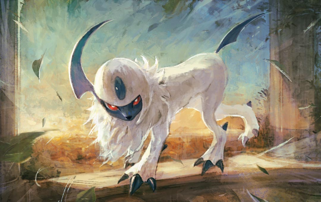 absol animal_focus bright_pupils claws full_body gen_3_pokemon horns nintendo no_humans pokemon pokemon_(creature) pokemon_focus pokemon_tcg red_eyes second-party_source sgtoon. single_horn solo white_pupils
