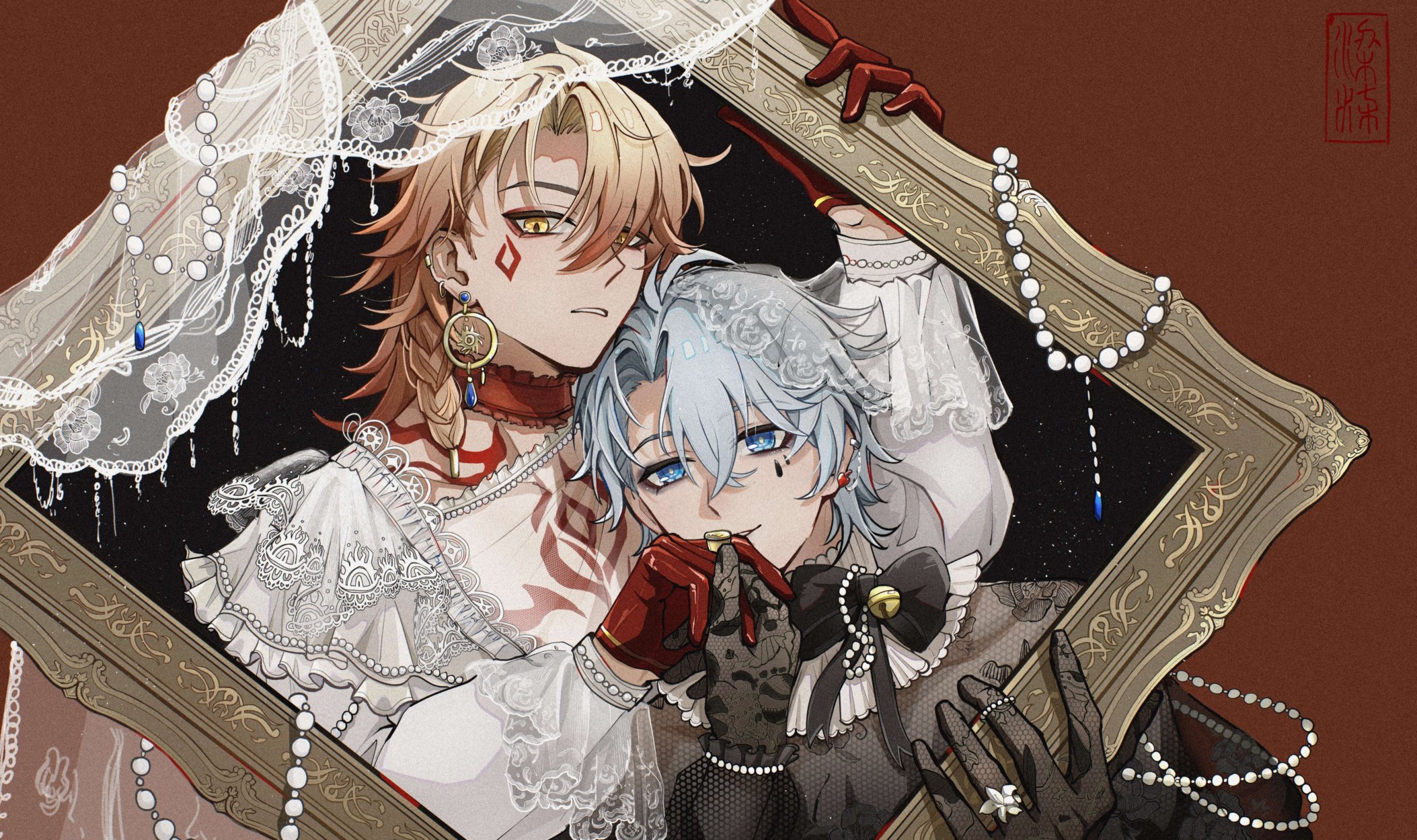 &{ID:12382296 CreatedAt:Fri Aug 01 12:16:01 -0500 2025 Score:0 Width:2107 Height:1250 MD5:8a20ec147de1df6976c85a00a9651d9b Directory:8a/20 Image:8a20ec147de1df6976c85a00a9651d9b.jpg Rating:general Source:https://twitter.com/kkkkkk202357/status/1951316073103364156 Change:1754068562 Owner:danbooru CreatorID:6498 ParentID:0 Sample:1 PreviewHeight:207 PreviewWidth:350 Tags:2boys black_dress black_gloves black_ribbon blue_eyes brown_background choker crossdressing crossdressing_(mtf) dress frilled_choker frills gloves grey_hair hair_between_eyes highres holding_hands honkai:_star_rail honkai_(series) kkkkkk202357 looking_at_viewer male_focus medium_hair multiple_boys mydei_(honkai:_star_rail) orange_hair parted_bangs parted_lips phainon_(honkai:_star_rail) red_choker red_gloves red_tattoo ribbon short_hair smile teeth upper_body white_dress yellow_eyes yellow_pupils Title: HasNotes:false HasComments:false FileURL:https://img2.gelbooru.com/images/8a/20/8a20ec147de1df6976c85a00a9651d9b.jpg PreviewURL:https://gelbooru.com/thumbnails/8a/20/thumbnail_8a20ec147de1df6976c85a00a9651d9b.jpg SampleURL:https://img2.gelbooru.com/samples/8a/20/sample_8a20ec147de1df6976c85a00a9651d9b.jpg SampleHeight:504 SampleWidth:850 Status:active PostLocked:0 HasChildren:false IsVideo:false DisplayDate:01.08.2025 12:16}