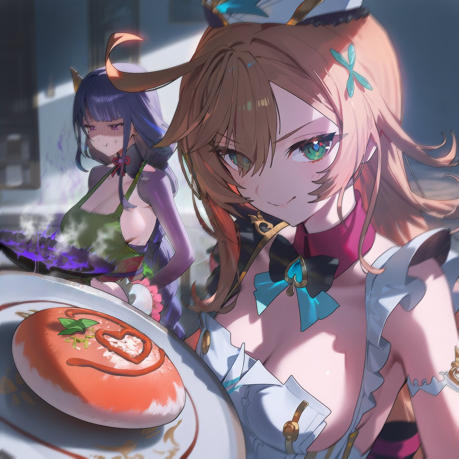 &{ID:12387371 CreatedAt:Sat Aug 02 10:45:16 -0500 2025 Score:16 Width:1536 Height:1536 MD5:4c89b66fa7b49c723c7e9ce34aaa494b Directory:4c/89 Image:4c89b66fa7b49c723c7e9ce34aaa494b.jpg Rating:general Source:https://twitter.com/shuraillusts/status/1951440767118942520 Change:1770219436 Owner:danbooru CreatorID:6498 ParentID:0 Sample:1 PreviewHeight:350 PreviewWidth:350 Tags:2girls ahoge ai-assisted apron black_bow blonde_hair bow breasts chef chef_hat closed_mouth escoffier_(genshin_impact) food fork_hair_ornament frilled_apron frills genshin_impact green_apron hair_ornament hat heart highres holding holding_food jewelry large_breasts long_braid long_hair looking_at_viewer multiple_girls pout purple_eyes purple_hair raiden_shogun red_ribbon ribbon shuraillusts smile symbol_in_eye v-shaped_eyebrows very_long_hair white_apron wrist_cuffs Title: HasNotes:false HasComments:true FileURL:https://img2.gelbooru.com/images/4c/89/4c89b66fa7b49c723c7e9ce34aaa494b.jpg PreviewURL:https://gelbooru.com/thumbnails/4c/89/thumbnail_4c89b66fa7b49c723c7e9ce34aaa494b.jpg SampleURL:https://img2.gelbooru.com/samples/4c/89/sample_4c89b66fa7b49c723c7e9ce34aaa494b.jpg SampleHeight:850 SampleWidth:850 Status:active PostLocked:0 HasChildren:false IsVideo:false DisplayDate:02.08.2025 10:45}