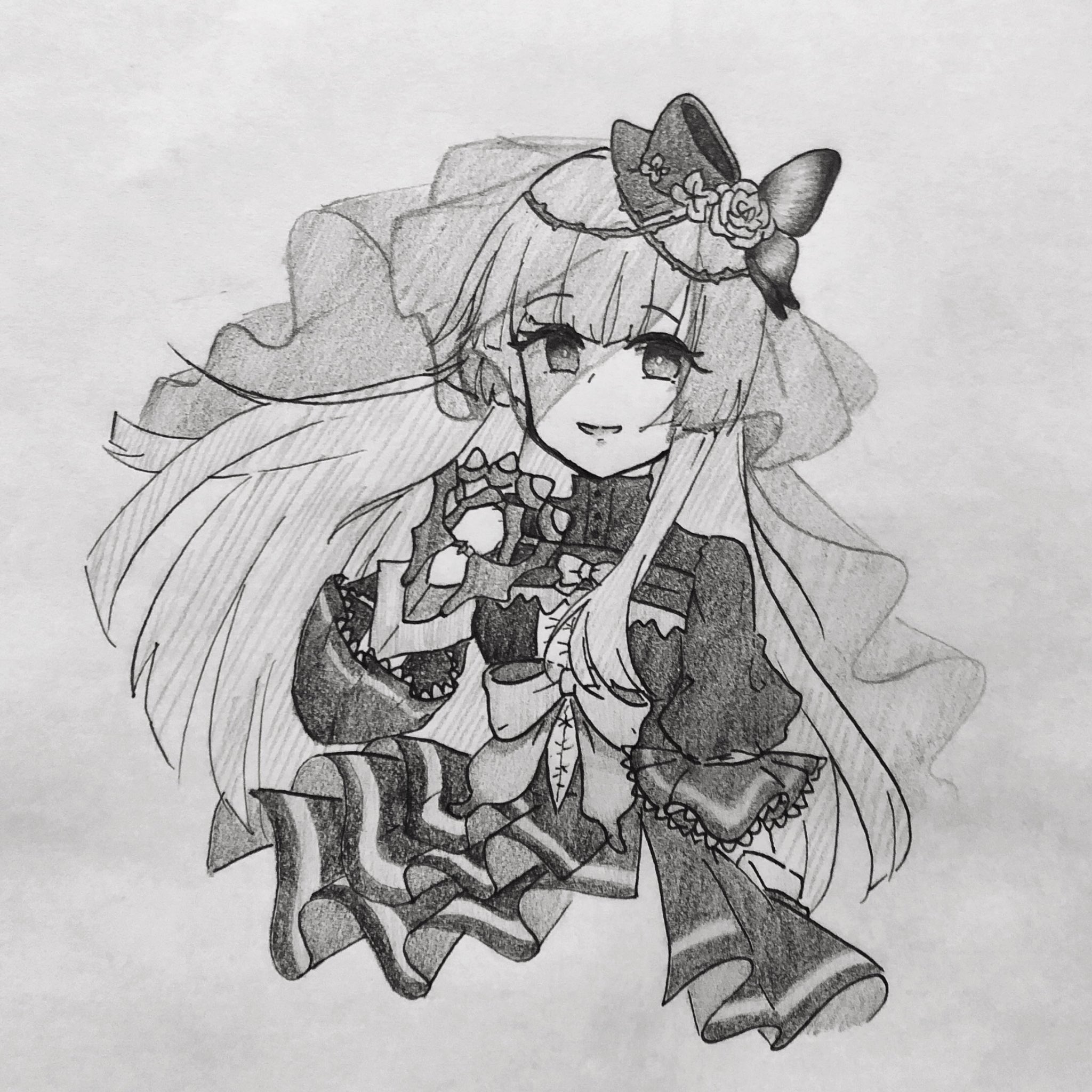 1girl artist_request chaos_juliet_(grimms_notes) grimms_notes highres monochrome smile solo traditional_media upper_body veil