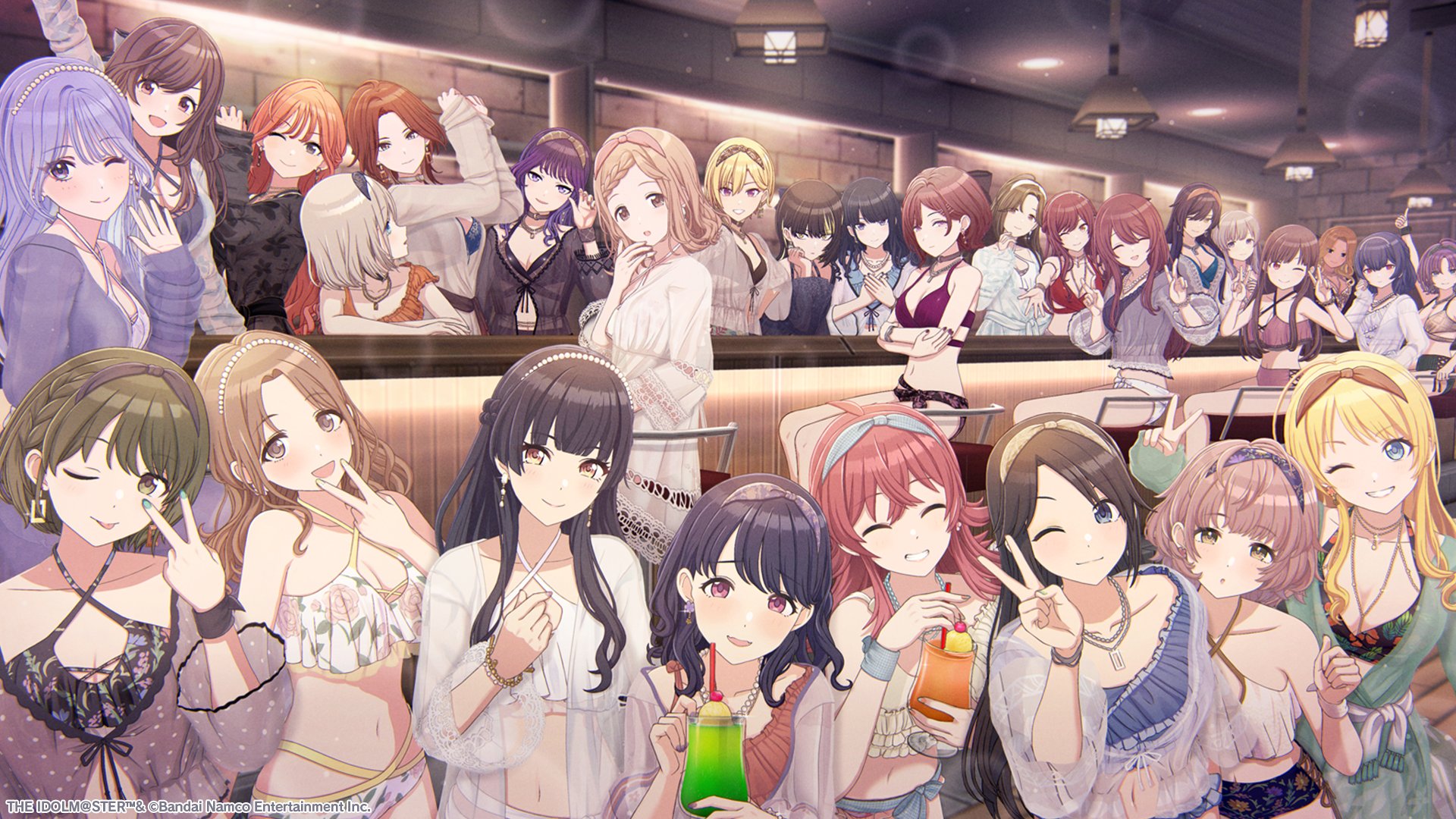 aketa_mikoto arisugawa_natsuha asakura_toru breasts earrings fukumaru_koito hachimiya_meguru hair_ornament highres higuchi_madoka ichikawa_hinana idolmaster idolmaster_shiny_colors idolmaster_shiny_colors_song_for_prism ikaruga_luca ikuta_haruki izumi_mei jewelry juice kazano_hiori komiya_kaho kuwayama_chiyuki lantern long_hair mayuzumi_fuyuko mitsumine_yuika morino_rinze multiple_girls nanakusa_nichika necklace official_art open_mouth osaki_amana osaki_tenka saijo_juri sakuragi_mano serizawa_asahi shirase_sakuya sonoda_chiyoko suzuki_hana swimsuit tanaka_mamimi tsukioka_kogane yukoku_kiriko