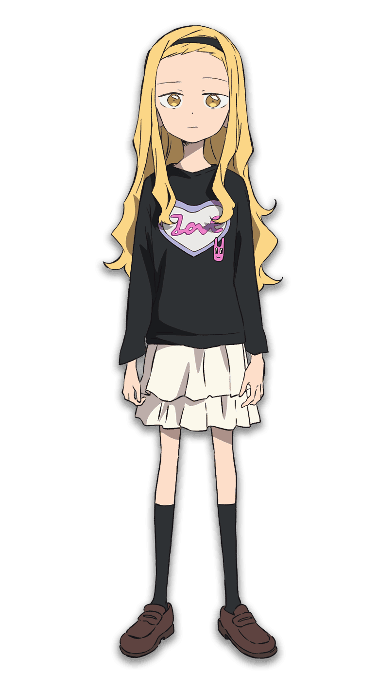 1girl anime_coloring black_hairband black_shirt black_socks blonde_hair closed_mouth full_body hairband highres kirarazaka_marina loafers long_hair long_sleeves looking_at_viewer nagahara_keita official_art pleated_skirt shirt shoes sidelocks simple_background skirt socks solo standing takopii_no_genzai transparent_background white_skirt yellow_eyes