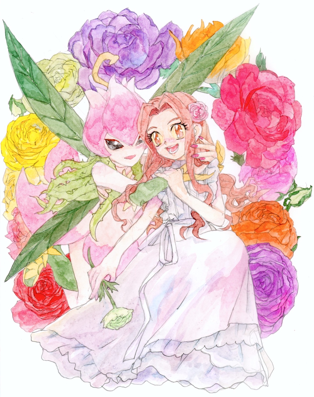 digimon digimon_(creature) fairy flower highres lilimon long_hair monster_girl nail_polish petals pixiv_user_(72617767) plant_girl smile tachikawa_mimi thorns