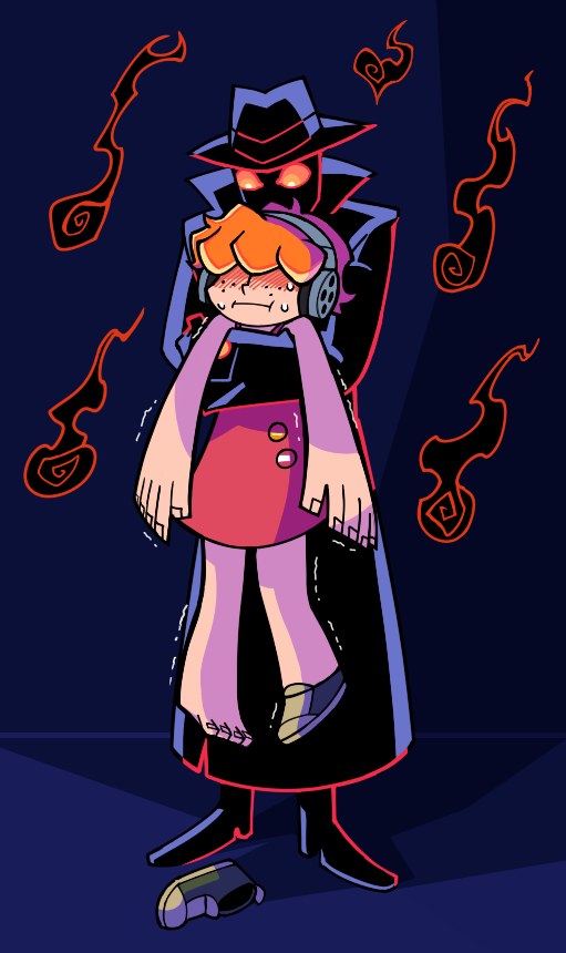 blush brief_(psg) carrying carrying_person coat drawfag dress fedora freckles ghost_(psg) hair_between_eyes hat headphones non-web_source orange_hair overcoat panty_&_stocking_with_garterbelt red_dress sweat