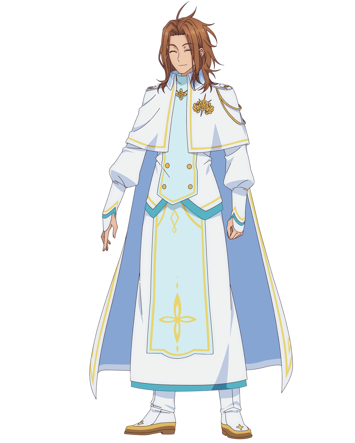 1boy ^_^ ahoge anime_coloring becker_(yami_healer) boots brown_hair capelet clenched_hand cloak closed_eyes closed_mouth collared_shirt curtained_hair full_body highres isshun_de_chiryou_shiteita_noni_yakutatazu_to_tsuihou_sareta_tensai_chiyushi_yami_healer_toshite_tanoshiku_ikiru long_sleeves looking_at_viewer male_focus official_art parted_bangs sawada_yoshihiro shirt simple_background smile solo standing transparent_background white_boots white_capelet white_cloak white_shirt