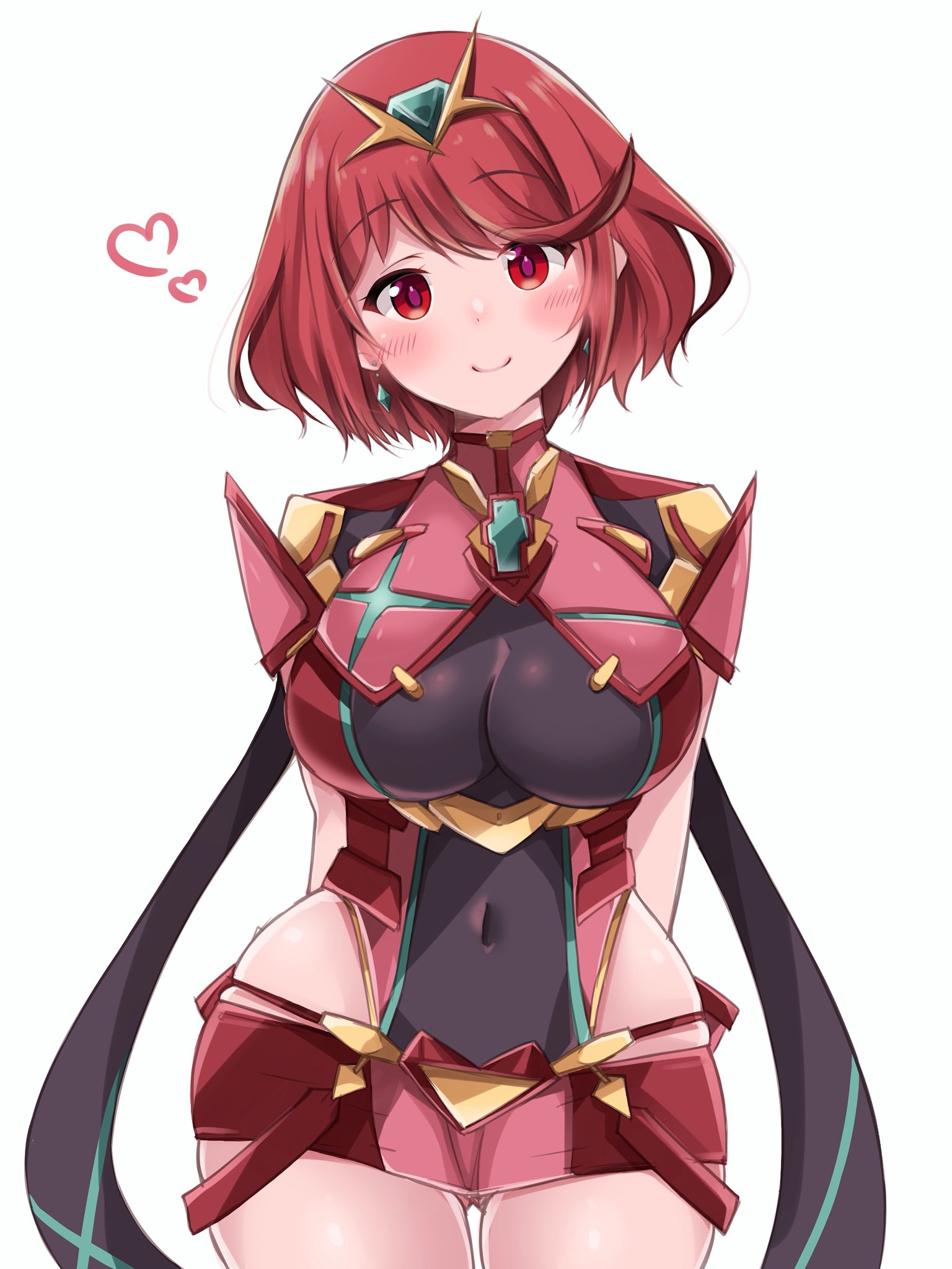bob_cut chest_jewel core_crystal_(xenoblade) earrings floating_earrings gem headpiece highres impossible_clothes kurokaze_no_sora pyra_(xenoblade) red_hair red_shorts shorts simple_background swept_bangs tiara white_background xenoblade_chronicles_(series) xenoblade_chronicles_2