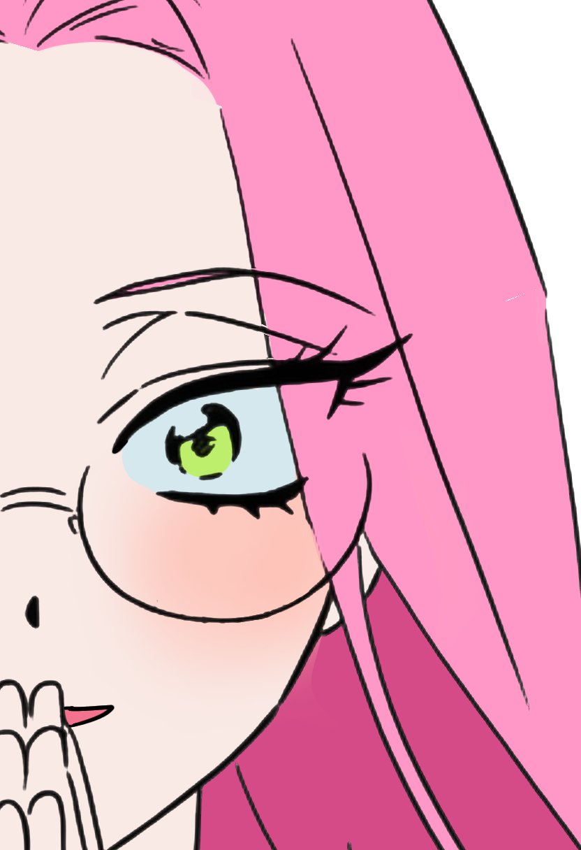 1girl alien_stage close-up glasses green_eyes head_out_of_frame highres long_hair lubya mizi_(alien_stage) pink_hair smile solo