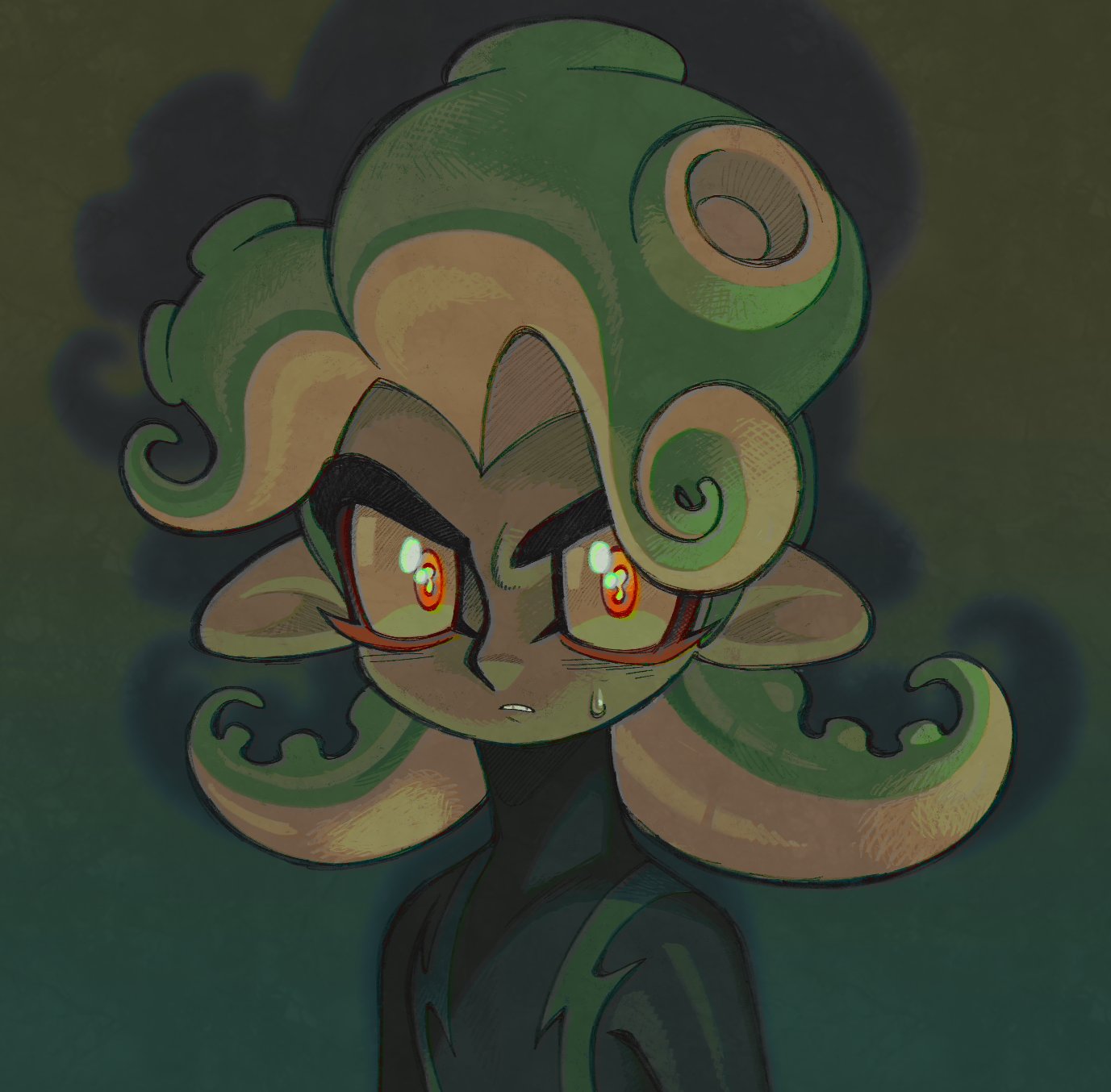 1950s_(style) cephalopod_eyes character_request deformed eyeliner faux_retro_artstyle highres makeup nintendo octoling pointy_ears roachgore solo splatoon_(series) suction_cups tentacle_hair