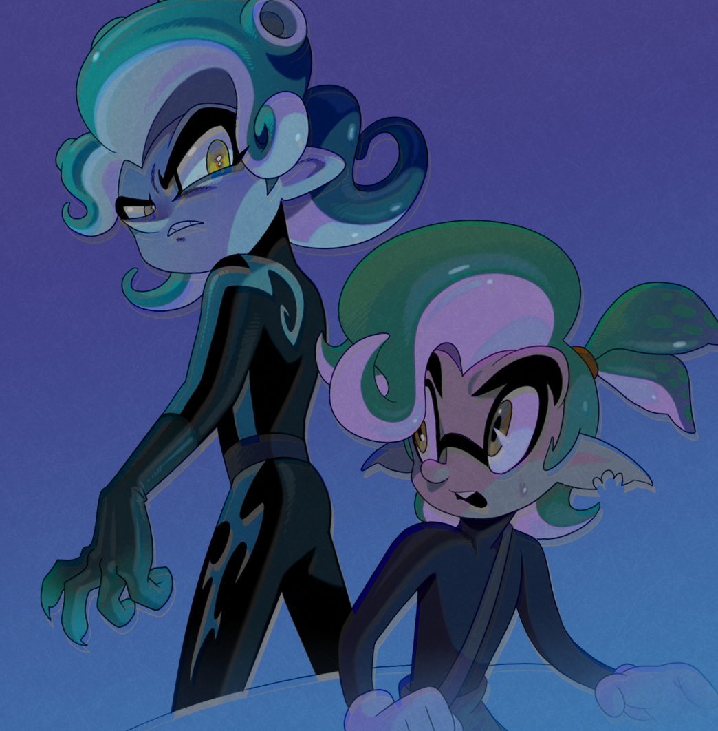 1950s_(style) cephalopod_eyes frown green_hair inkling nintendo octoling pointy_ears pointy_nose roachgore splatoon_(series) suction_cups teeth tentacle_hair vonnie_aurita
