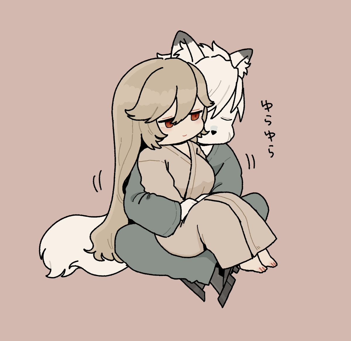 1boy 1girl alexandrina_sebastiane brown_hair couple long_hair nightgown short_hair simple_background sitting sitting_on_lap sitting_on_person victoria_housekeeping_co._(zenless_zone_zero) von_lycaon white_hair wodon_(neotidon) zenless_zone_zero