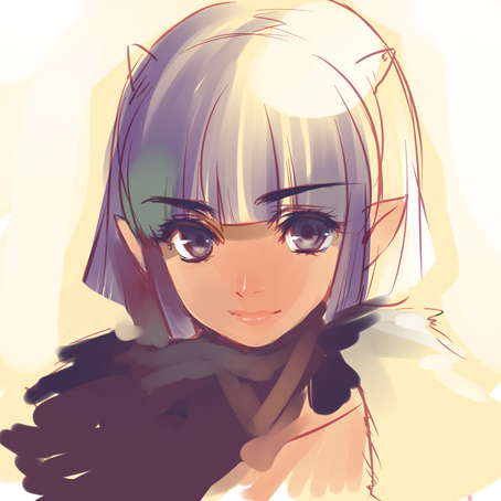 blue_eyes demon_girl horns lowres madara_sai oni pointy_ears short_hair sketch smile solo white_hair