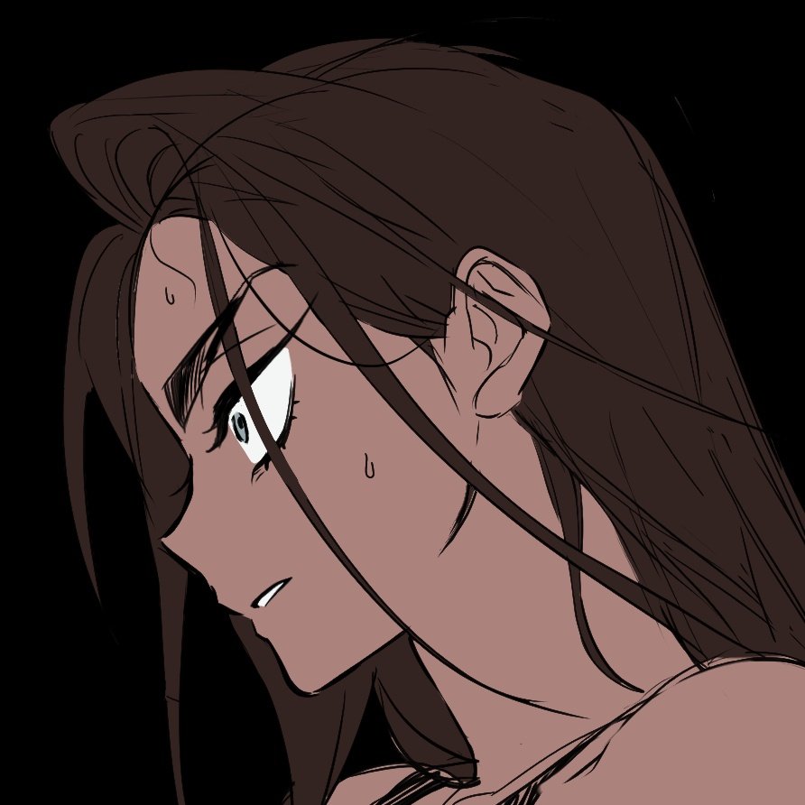 1girl alien_stage black_background brown_hair dark-skinned_female dark_skin from_side grey_eyes hyuna_(alien_stage) long_hair lubya parted_lips solo thick_eyebrows