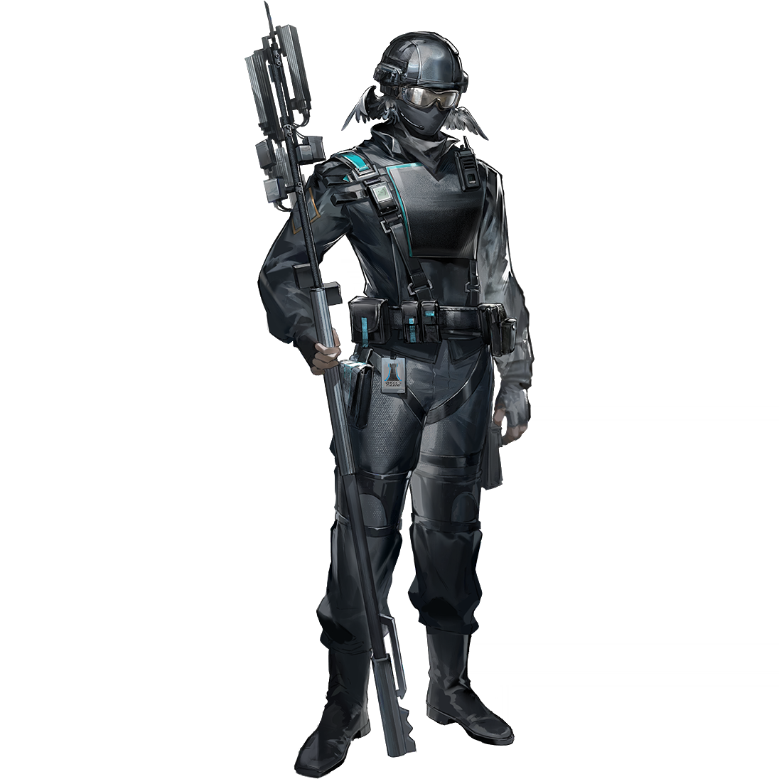 1boy arknights bandana bandana_over_mouth black_jacket covered_face faceless faceless_male feather_hair full_body goggles helmet holding holding_staff holding_weapon jacket male_focus official_art reserve_operator_supporter_(arknights) rhodes_island_logo_(arknights) rhodes_island_uniform simple_background solo staff standing tachi-e tactical_clothes third-party_source transparent_background walkie-talkie weapon yuji_(fantasia)