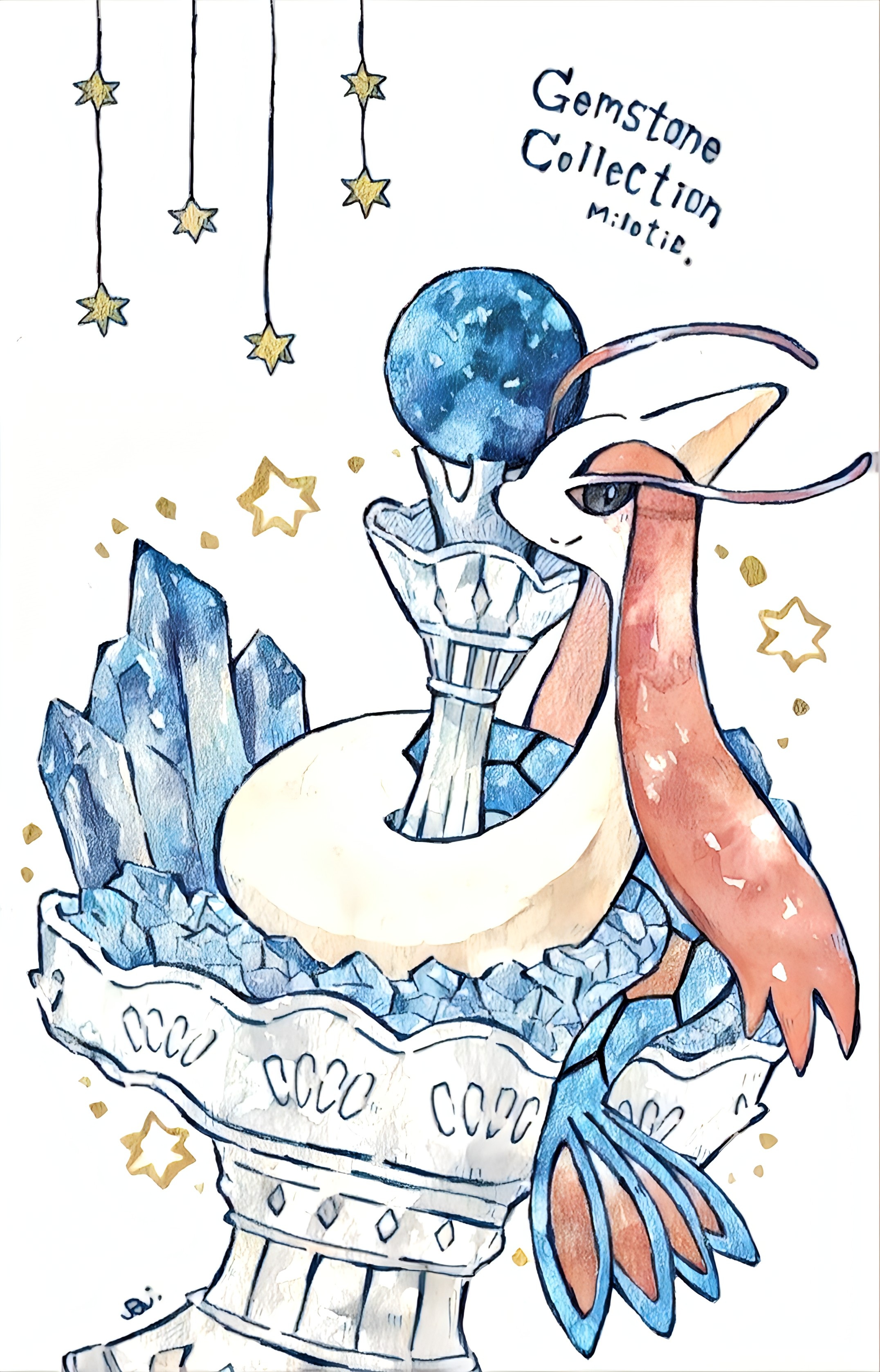 absurdres closed_mouth crystal diamond_(gemstone) full_body gem gen_3_pokemon grey_eyes highres looking_at_viewer milotic nintendo no_humans pokemon pokemon_(creature) pokemon_focus rai_(rai_kw) smile solo star_(symbol) tail