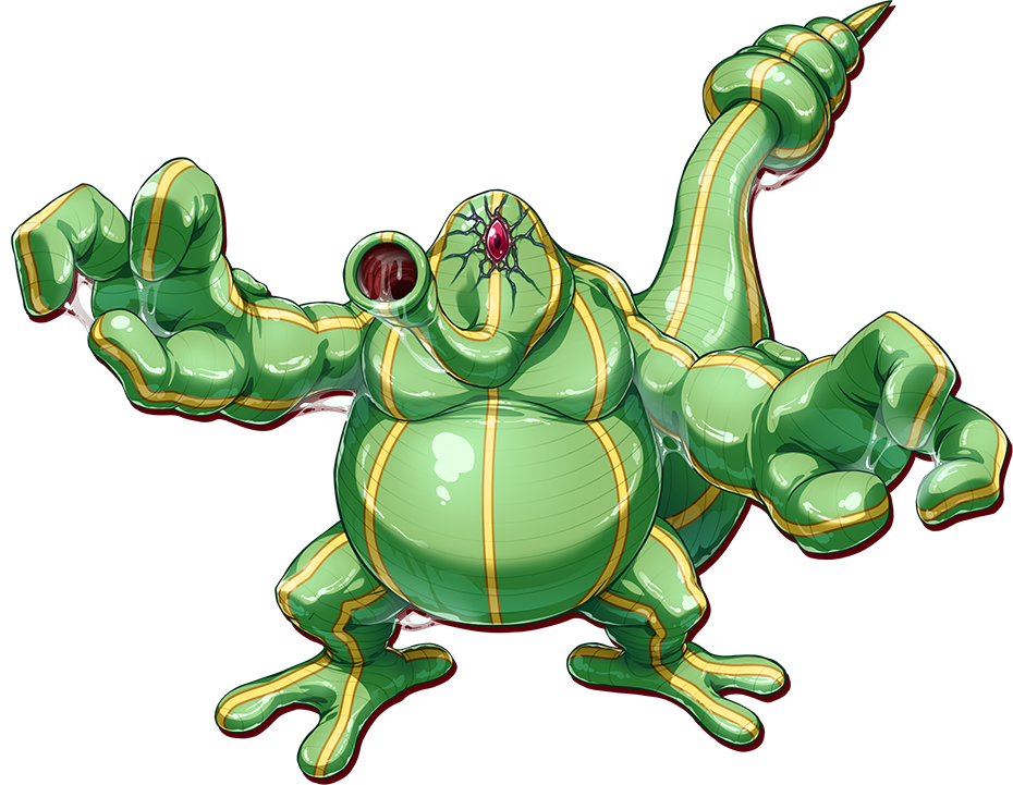 absorbgil alien colored_skin extra_eyes full_body green_skin inoino kouyoku_senki_exs-tia monster no_humans official_art red_eyes simple_background solo standing tail transparent_background white_background