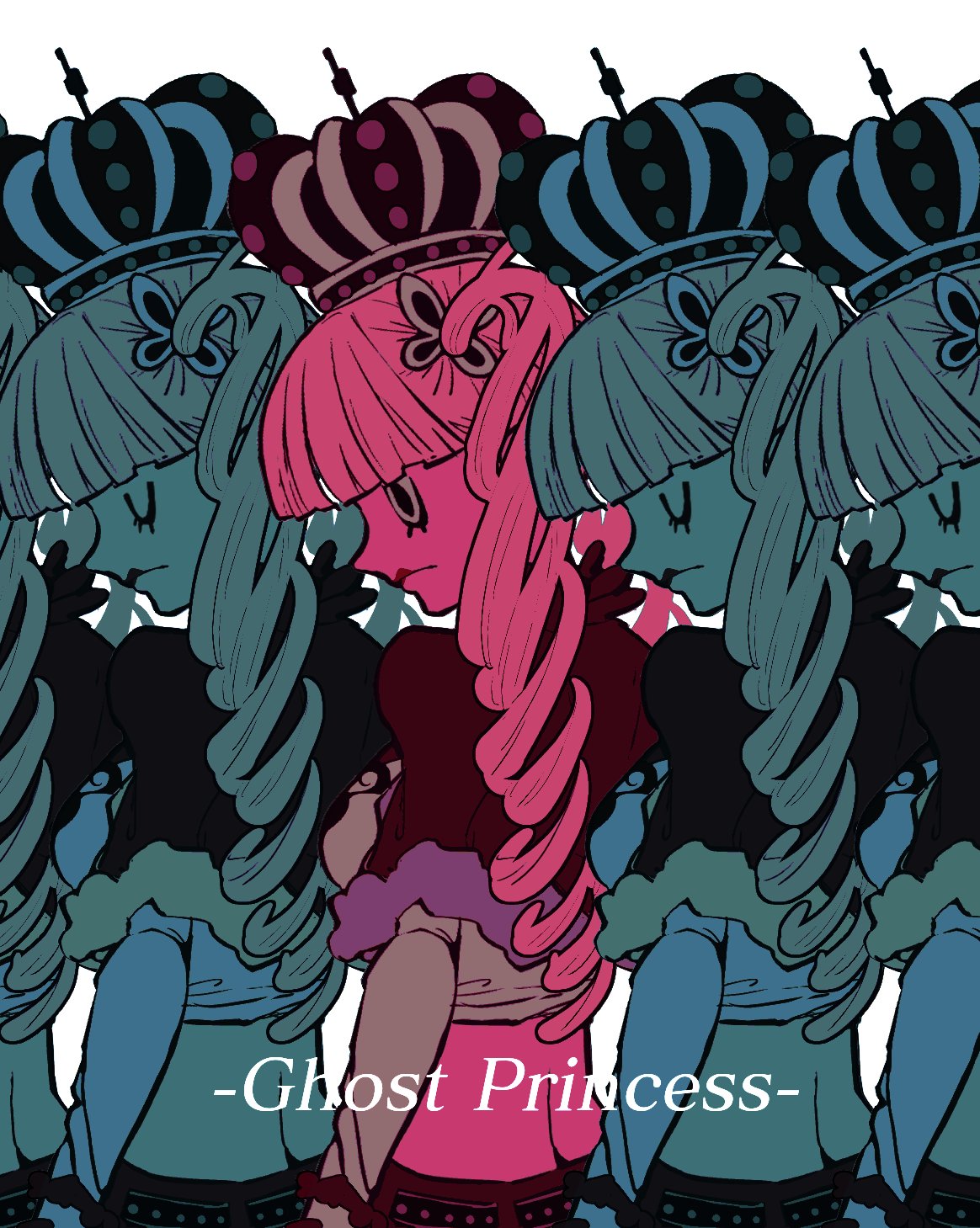 1girl blunt_bangs braid braided_twintails capelet closed_eyes closed_mouth crop_top crown gekidan183 highres long_sleeves lower_eyelashes_only multiple_views one_piece perona profile simple_background white_background