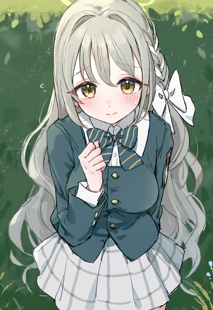 &{ID:12540880 CreatedAt:Fri Aug 29 13:00:17 -0500 2025 Score:6 Width:875 Height:1269 MD5:7fba4138381ecb3d4149aea1e99c3cc0 Directory:7f/ba Image:7fba4138381ecb3d4149aea1e99c3cc0.jpg Rating:general Source:https://www.pixiv.net/artworks/134482586 Change:1756490417 Owner:danbooru CreatorID:6498 ParentID:0 Sample:0 PreviewHeight:350 PreviewWidth:241 Tags:1girl blue_archive blush bow bowtie braid breasts brown_eyes collared_shirt green_halo grey_hair hair_bow halo highres jacket long_hair long_sleeves looking_at_viewer miyo_(blue_archive) school_uniform shirt simple_background skirt smile solo striped_bow striped_bowtie striped_clothes very_long_hair white_bow white_shirt yomizu_(rdad3278) Title: HasNotes:false HasComments:false FileURL:https://img2.gelbooru.com/images/7f/ba/7fba4138381ecb3d4149aea1e99c3cc0.jpg PreviewURL:https://gelbooru.com/thumbnails/7f/ba/thumbnail_7fba4138381ecb3d4149aea1e99c3cc0.jpg SampleURL: SampleHeight:0 SampleWidth:0 Status:active PostLocked:0 HasChildren:false IsVideo:false DisplayDate:29.08.2025 13:00}