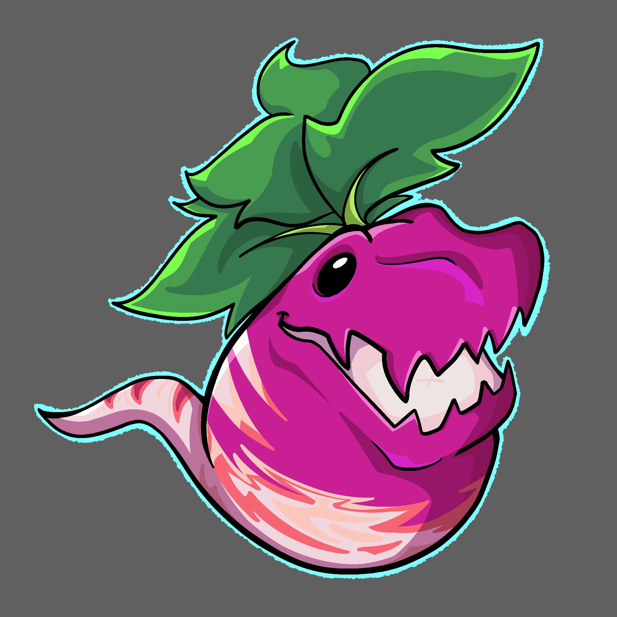 glutoart grey_background highres leaf no_humans open_mouth plants_vs._zombies plants_vs._zombies_heroes simple_background solo veloci-radish