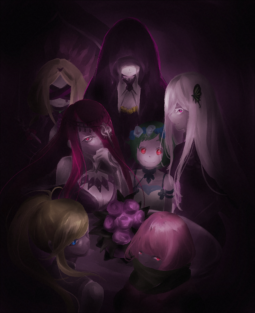 6+girls blindfold blonde_hair blue_eyes blue_flower blue_hair butterfly_hair_ornament carmilla_(re:zero) covered_eyes daphne_(re:zero) dark_room echidna_(re:zero) flower flower_bouquet flower_wreath green_hair hair_ornament long_sleeves looking_at_viewer minerva_(re:zero) multiple_girls pink_hair purple_hair re:zero_kara_hajimeru_isekai_seikatsu red_eyes restrained rose satella_(re:zero) sekhmet_(re:zero) typhon_(re:zero) white_flower white_hair witch