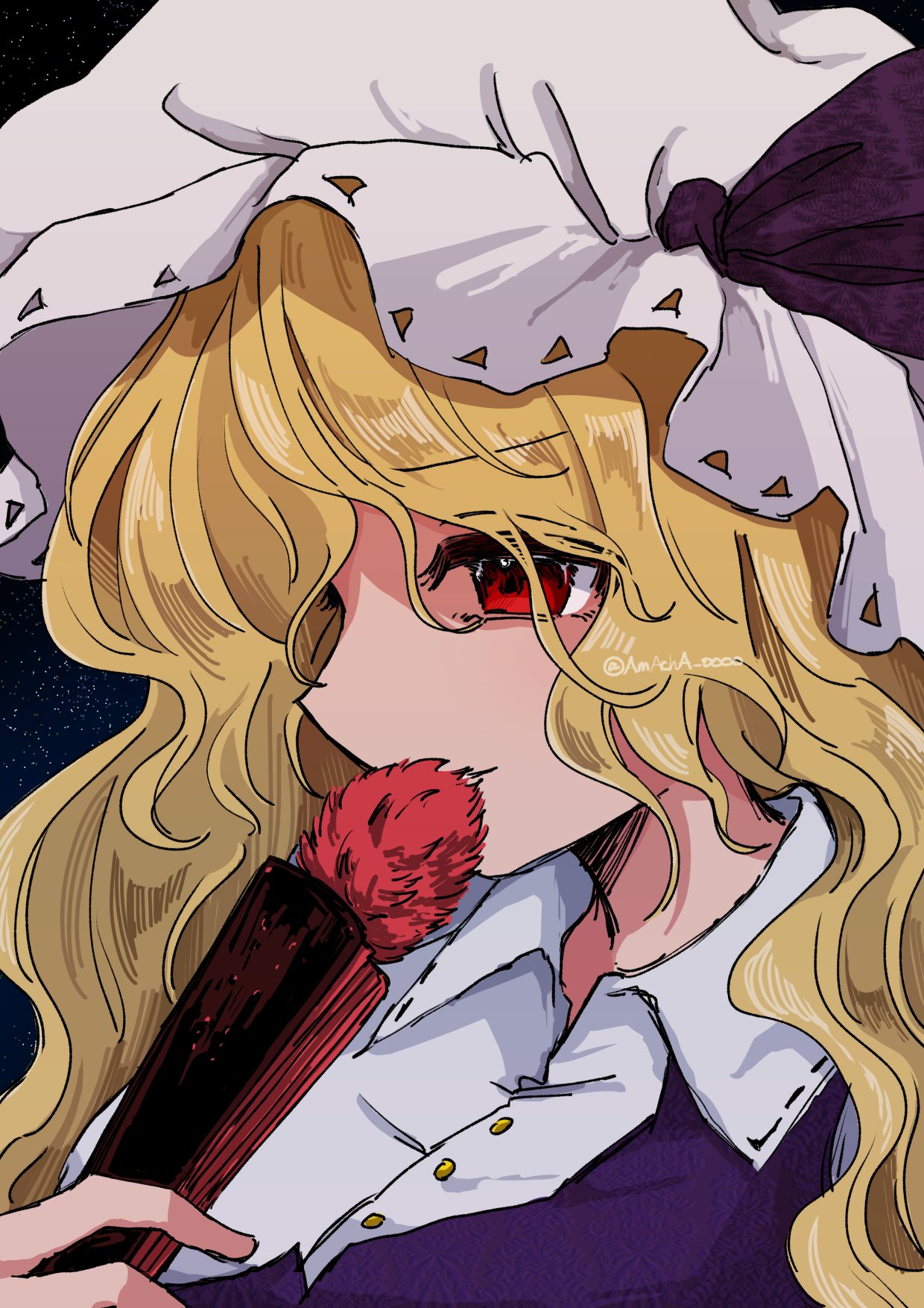 &{ID:12571301 CreatedAt:Wed Sep 03 09:00:02 -0500 2025 Score:0 Width:1240 Height:1754 MD5:d560745ff95c1b48b2071a72603b7d8d Directory:d5/60 Image:d560745ff95c1b48b2071a72603b7d8d.jpg Rating:general Source:https://twitter.com/AmAchA_0000/status/1962809060765638821 Change:1756908002 Owner:danbooru CreatorID:6498 ParentID:0 Sample:1 PreviewHeight:350 PreviewWidth:247 Tags:1girl amacha_0000 blonde_hair collared_shirt commentary_request dress fan_to_mouth folded_fan folding_fan fossilized_wonders from_side hand_fan hat highres holding holding_fan long_hair mob_cap portrait purple_dress red_eyes shirt smile solo touhou twitter_username watatsuki_no_toyohime wavy_hair white_shirt Title: HasNotes:false HasComments:false FileURL:https://img2.gelbooru.com/images/d5/60/d560745ff95c1b48b2071a72603b7d8d.jpg PreviewURL:https://gelbooru.com/thumbnails/d5/60/thumbnail_d560745ff95c1b48b2071a72603b7d8d.jpg SampleURL:https://img2.gelbooru.com/samples/d5/60/sample_d560745ff95c1b48b2071a72603b7d8d.jpg SampleHeight:1202 SampleWidth:850 Status:active PostLocked:0 HasChildren:false IsVideo:false DisplayDate:03.09.2025 09:00}