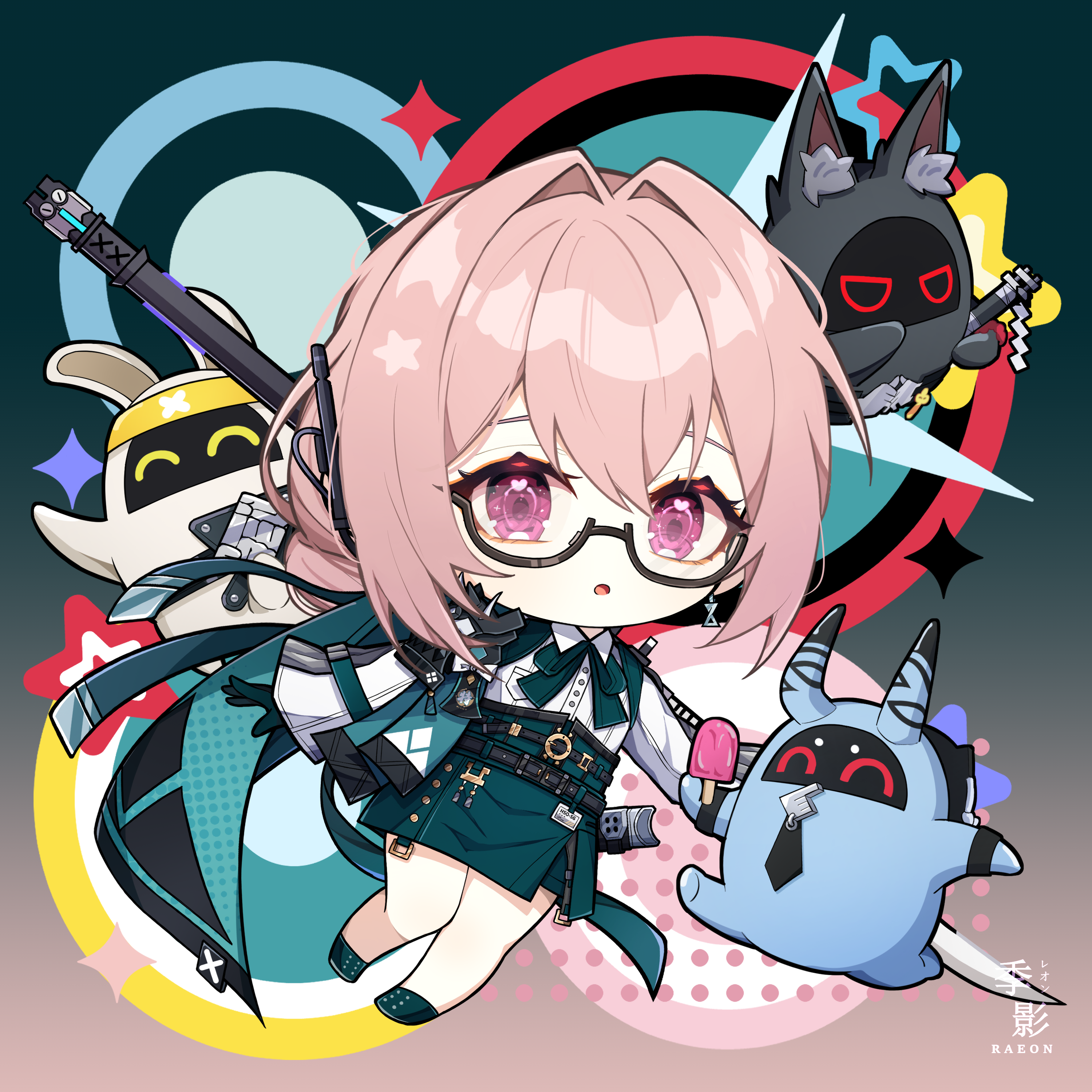 1boy 3girls absurdres animal_ears asaba_harumasa asaboo_(zenless_zone_zero) bangboo_6_(zenless_zone_zero) black_gloves black_skirt breasts glasses gloves hair_between_eyes highres hoshimi_miyabi large_breasts long_hair looking_at_viewer miyaboo_(zenless_zone_zero) multiple_girls pink_eyes pink_hair raxa9501 shirt sidelocks skirt smile tsukishiro_yanagi white_shirt zenless_zone_zero