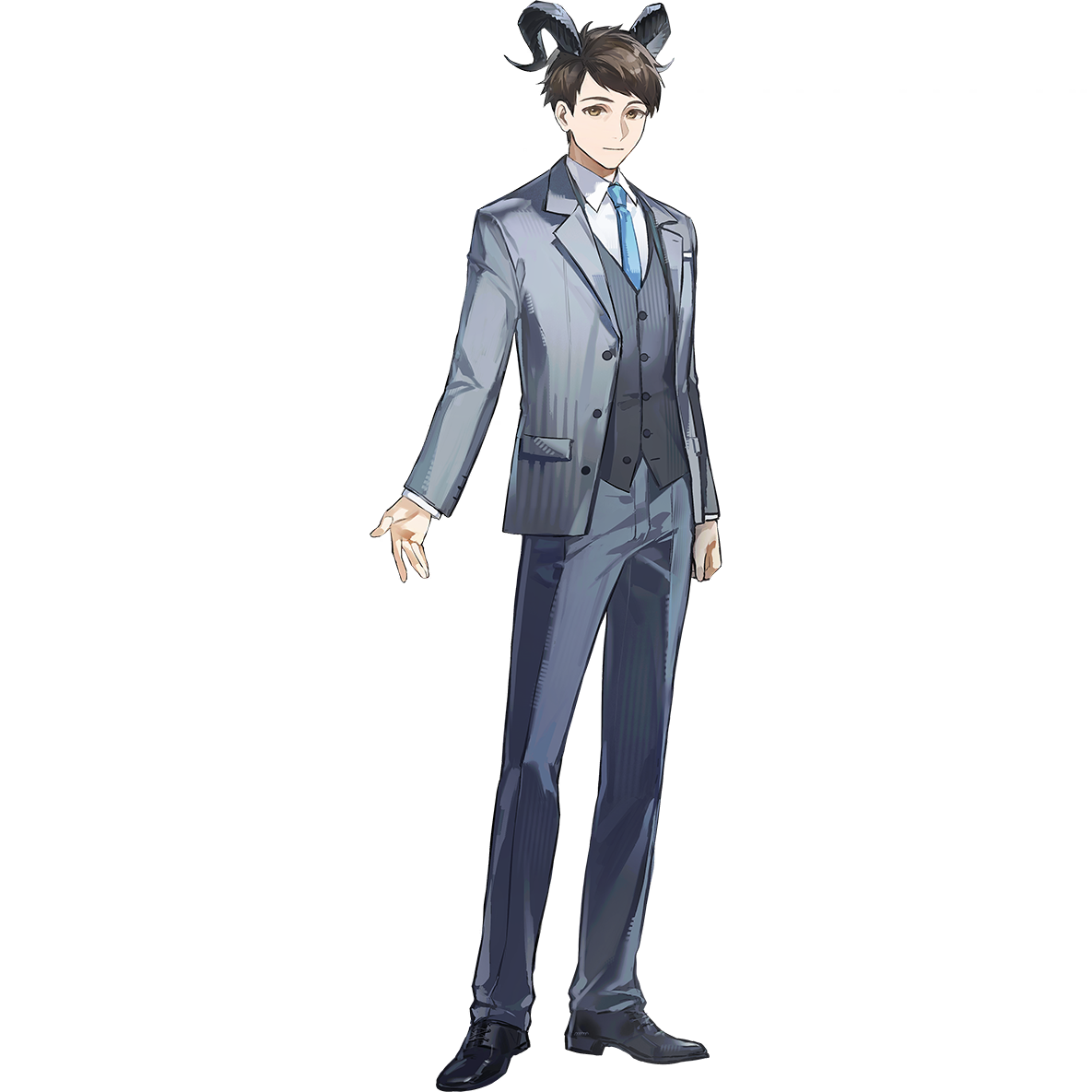 1boy arknights bang_dream! bang_dream!_it's_mygo!!!!! black_hair black_shoes black_vest blue_necktie brown_eyes closed_mouth collared_shirt full_body grey_jacket grey_pants jacket long_sleeves male_focus necktie official_art open_clothes open_jacket pants shirt shoes short_hair solo tachi-e third-party_source togawa_kiyotsugu vest white_shirt